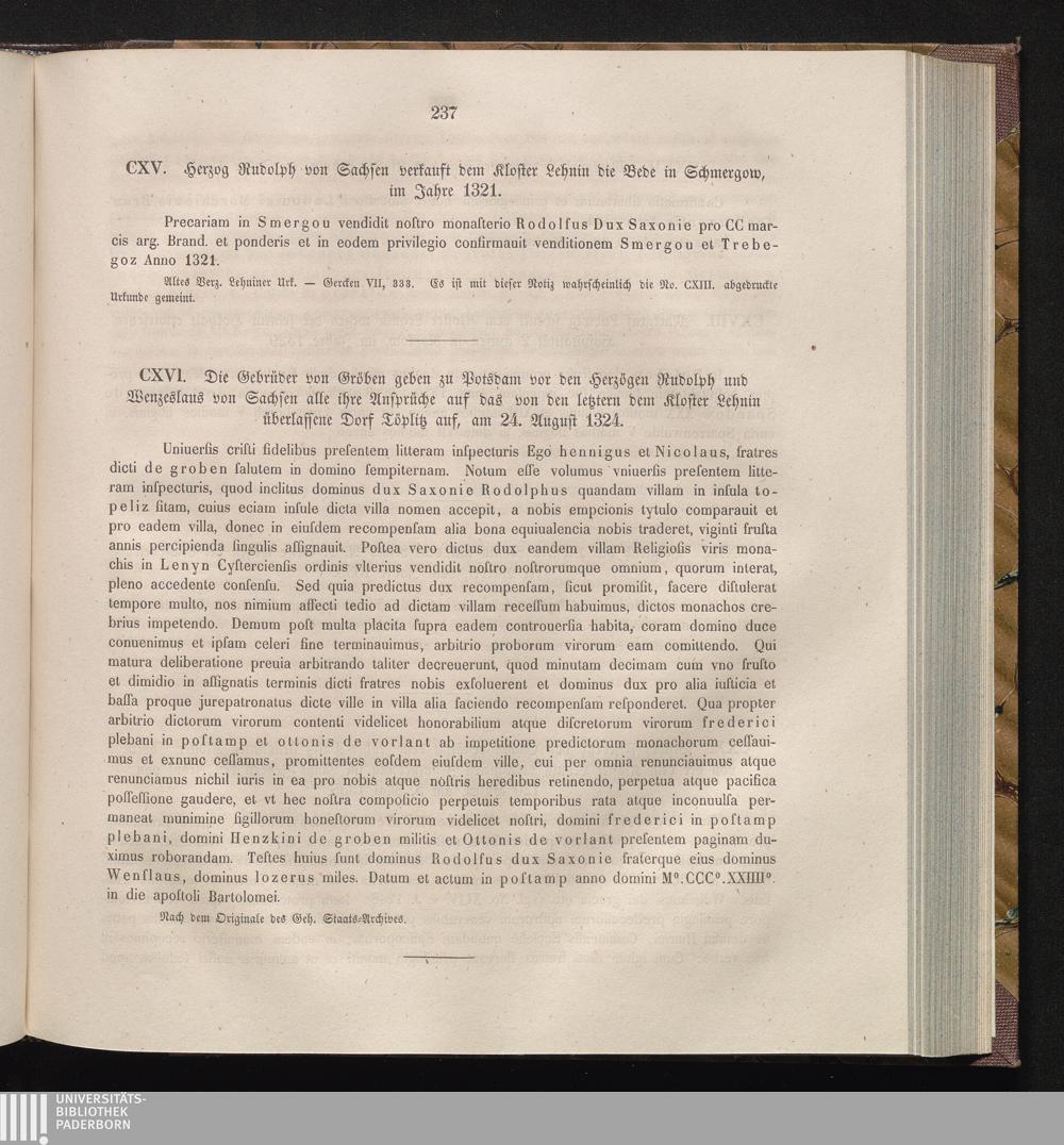 CXVI. Die Gebrüder von Gröben geben zu Potsdam vor den Herzögen Rudolph und Wenzeslaus[...]