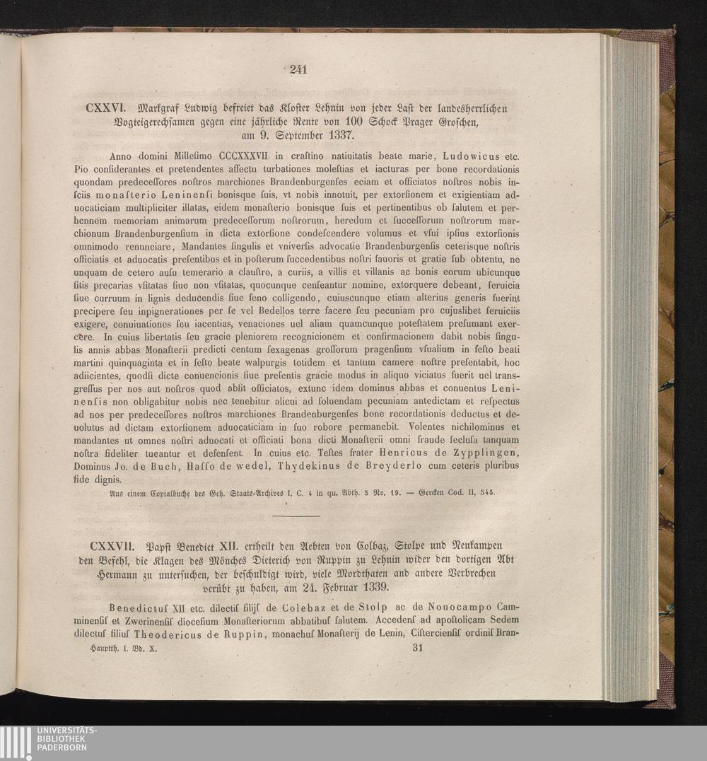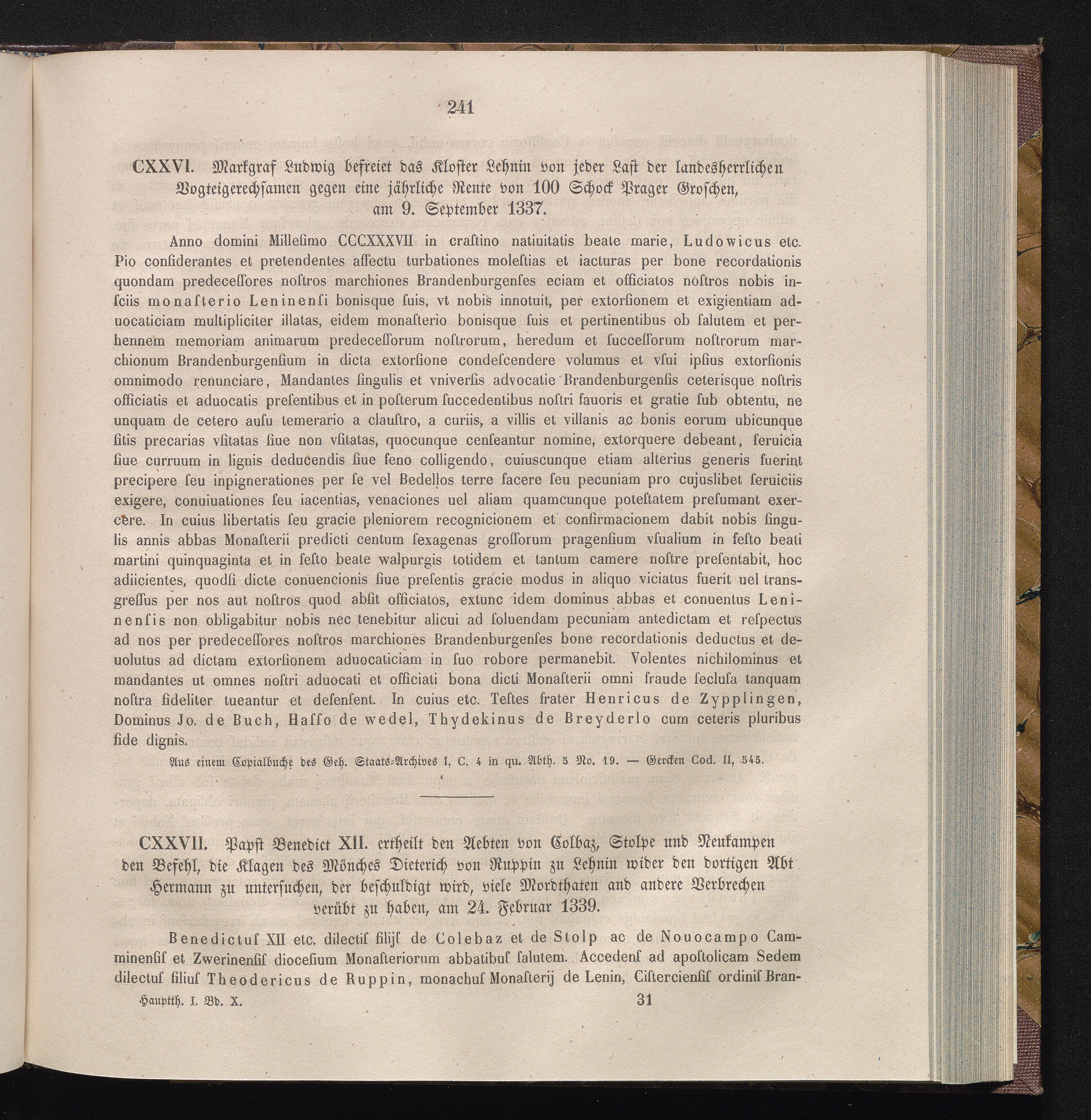 CXXVII. Papst Benedict XII. ertheilt den Aebten von Colbaz, Stolpe und Neukampen[...]