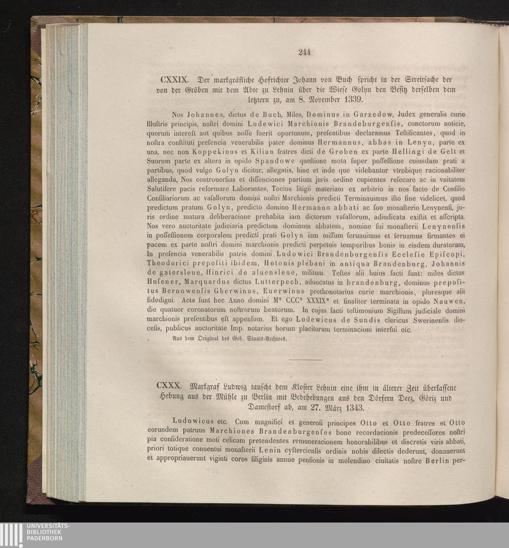 CXXX. Markgraf Ludwig tauscht dem Kloster Lehnin eine ihm in älterer Zeit überlassene[...]
