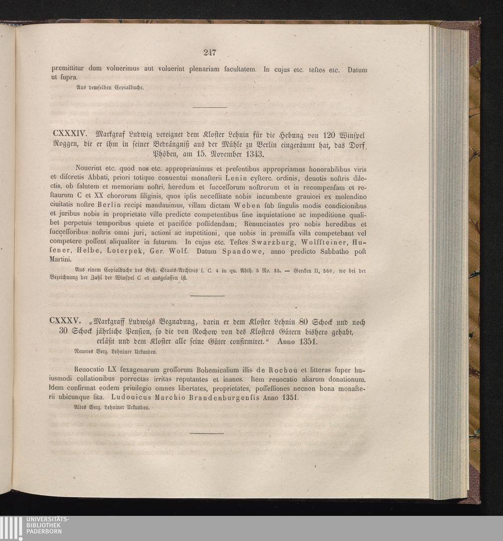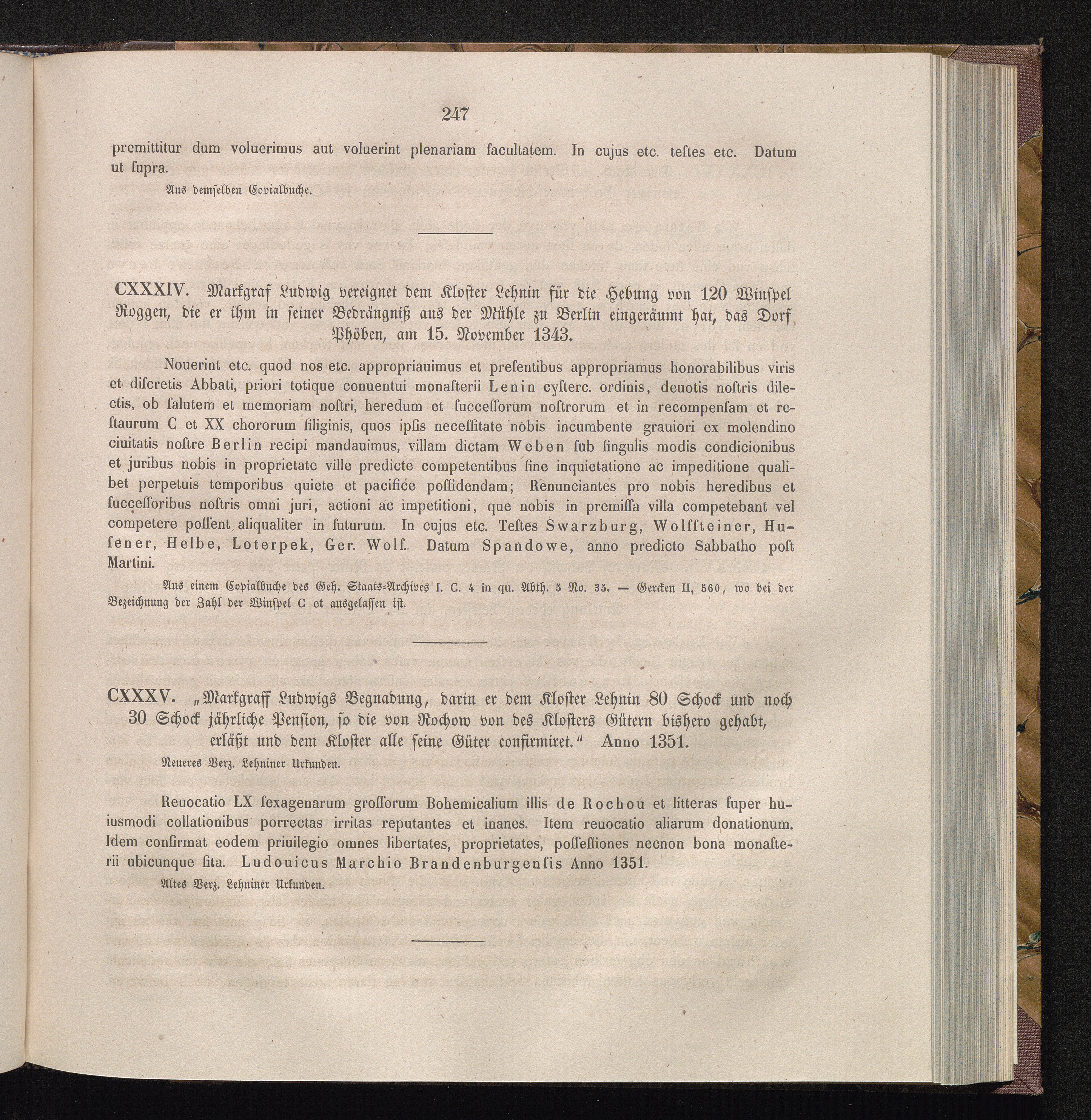 CXXXV. „ Markgraff Ludwigs Begnadung, darin er dem Kloster Lehnin 80 Schock und noch[...]