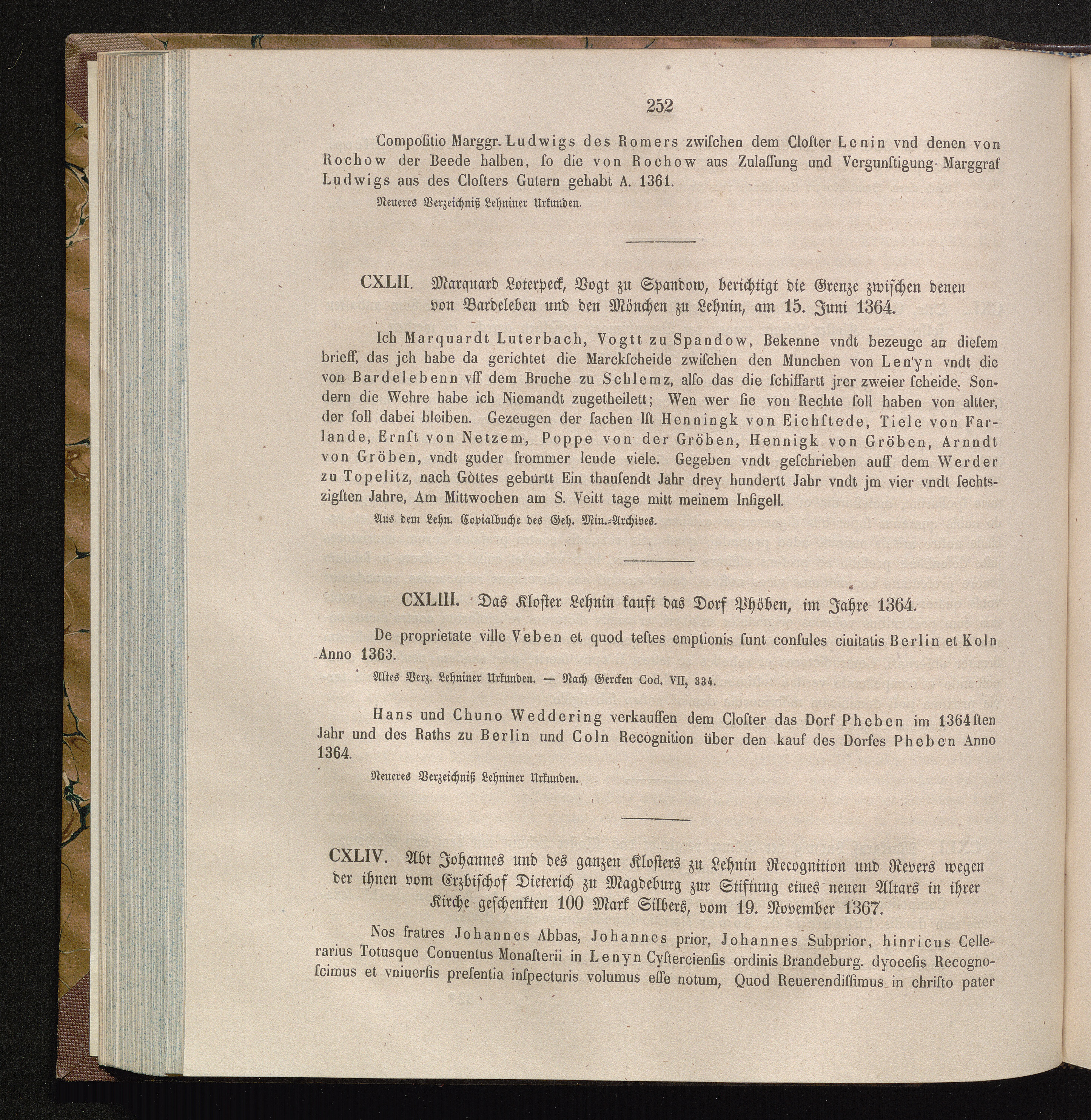CXLIV. Abt Johannes und des ganzen Klosters zu Lehnin Recognition und Revers wegen[...]
