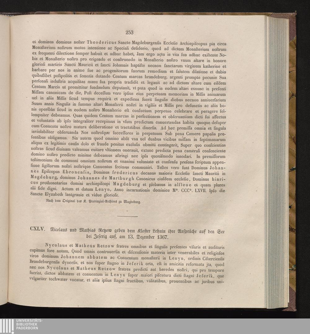 CXLV. Nicolaus und Mathias Retzow geben dem Kloster Lehnin ihre Ansprüche auf den[...]