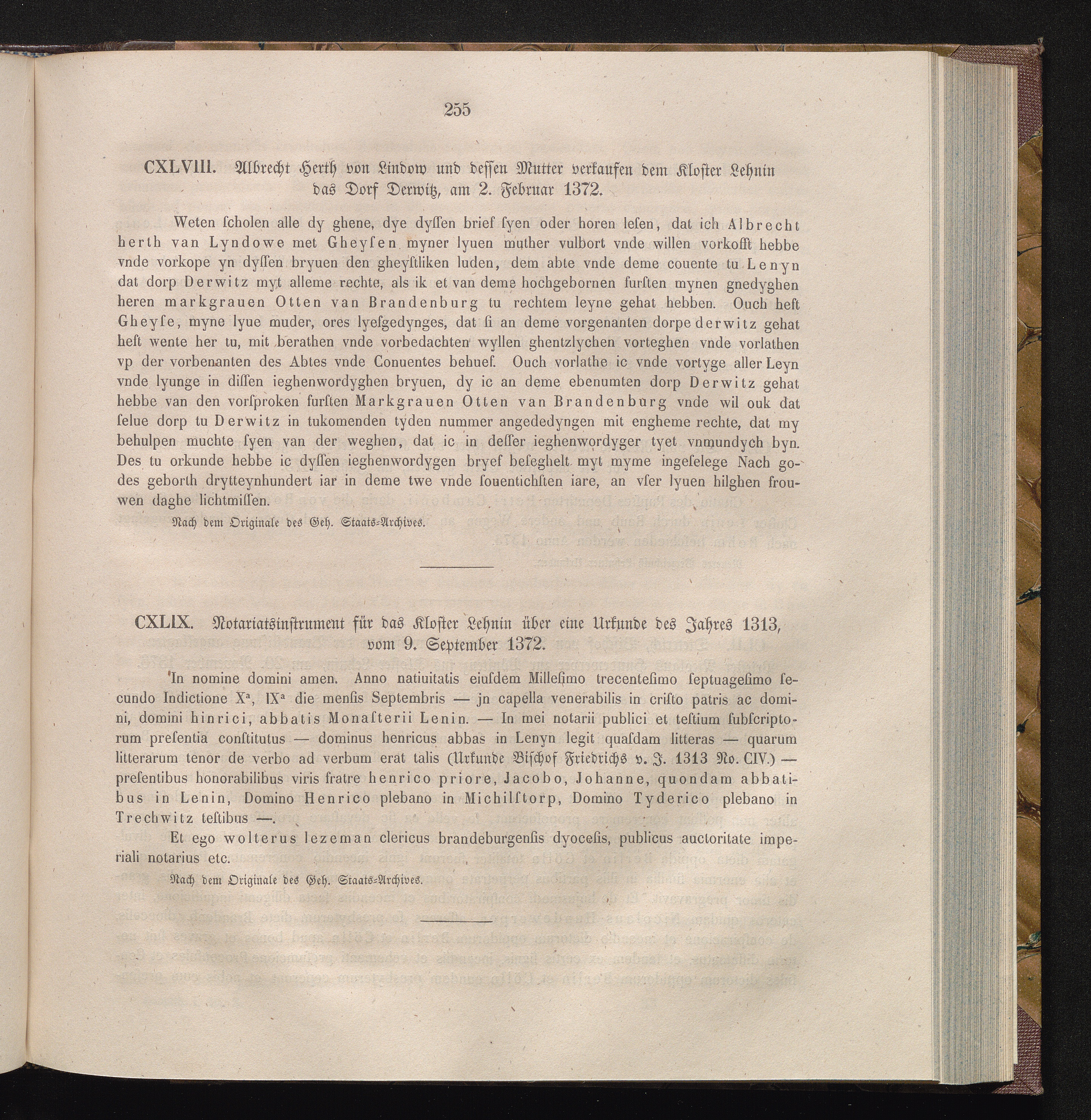 CXLIX. Rotariatsinstrument für das Kloster Lehnin über eine Urkunde des Jahres 1313,[...]