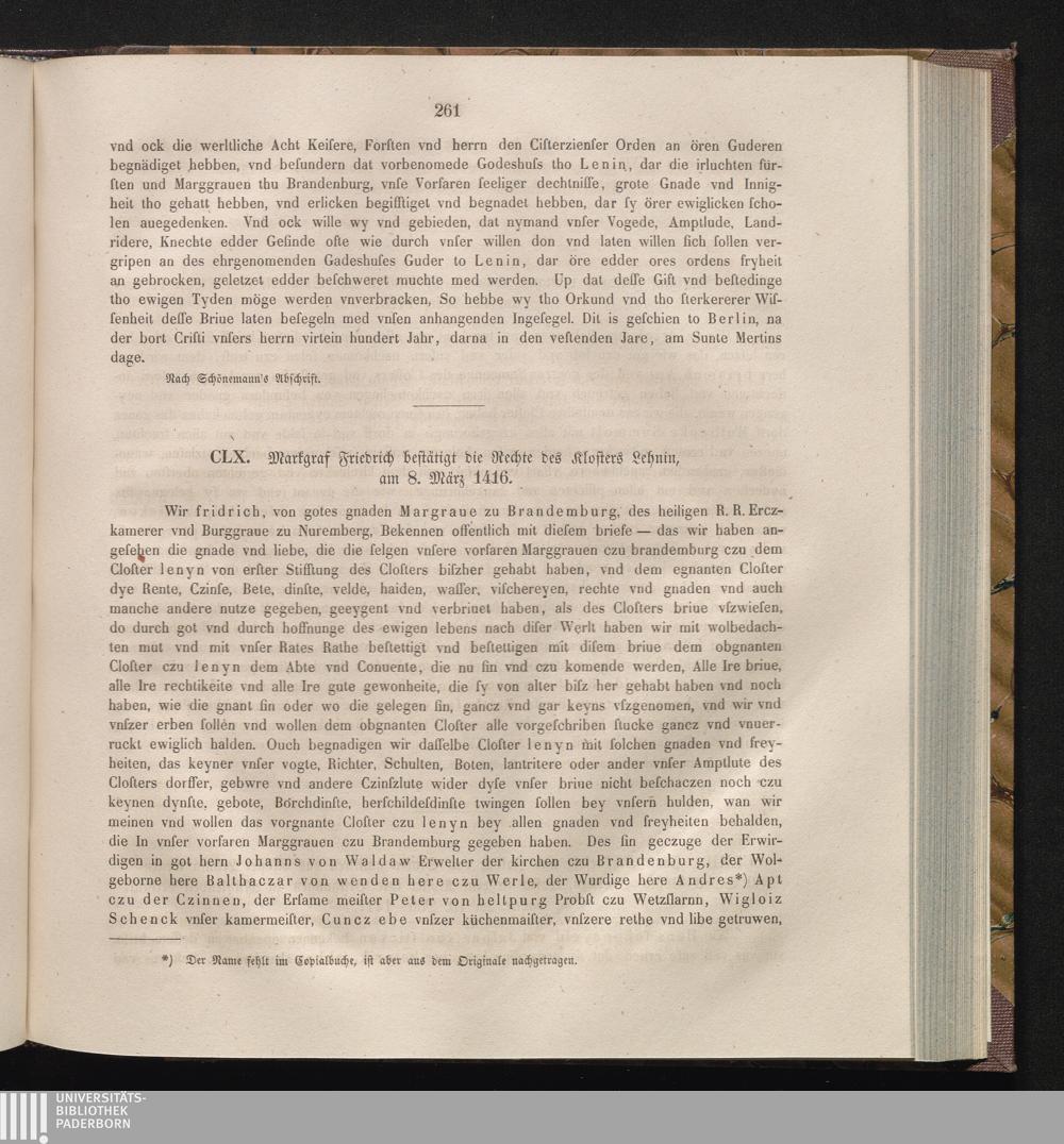 CLX. Markgraf Friedrich bestätigt die Rechte des Kosters Lehnin, am 8. März 1416[...]