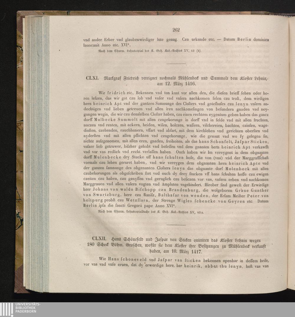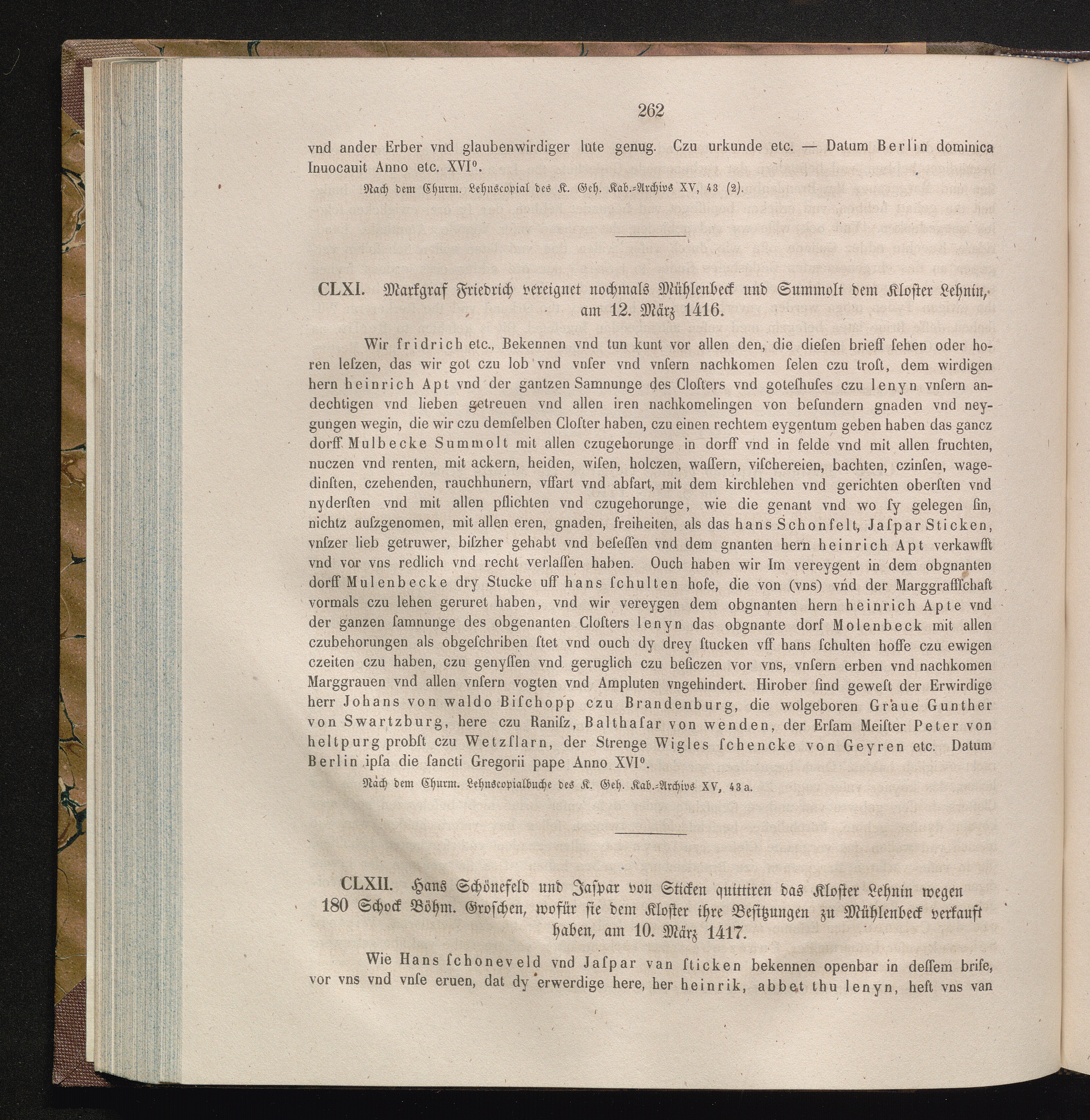CLXII. Hans Schönefeld und Jaspar von Sticken quittiren das Kloster Lehnin wegen[...]