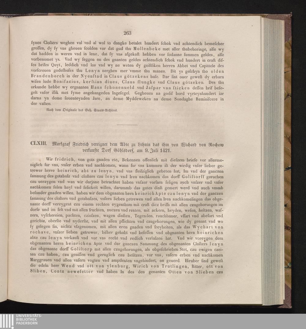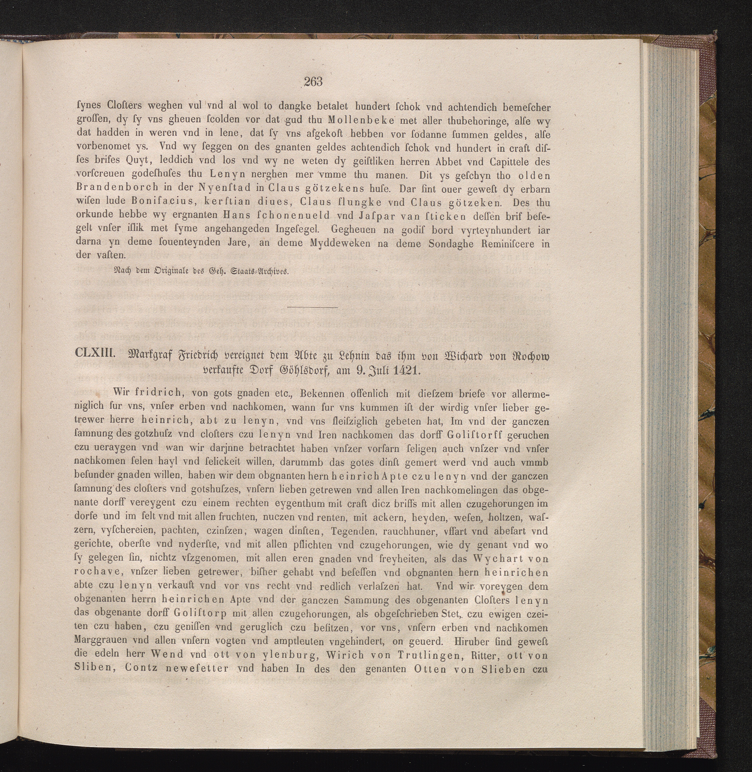 CLXIII. Markgraf Friedrich vereignet dem Abte zu Lehnin das ihm von Wichard von Rochow[...]