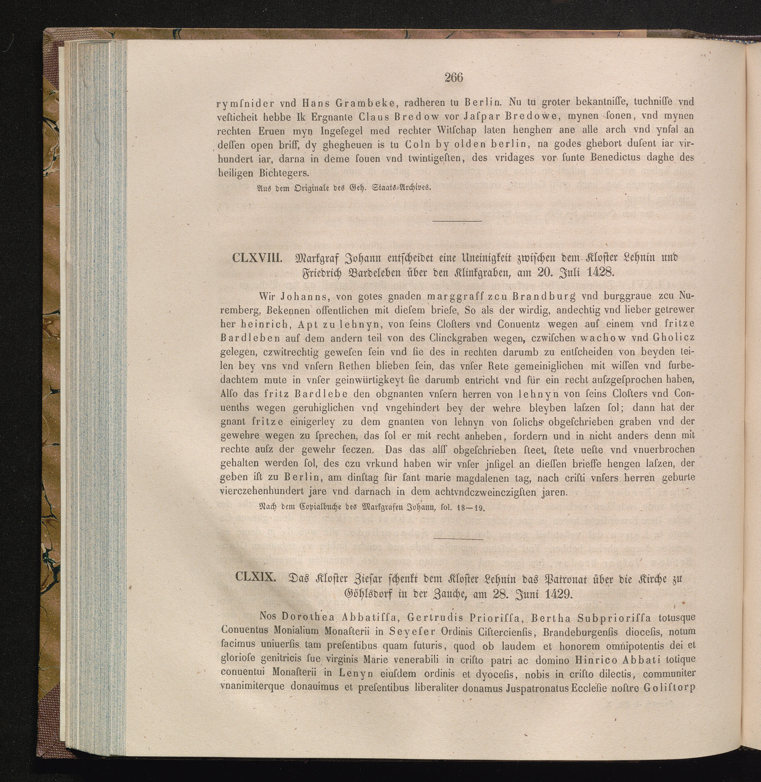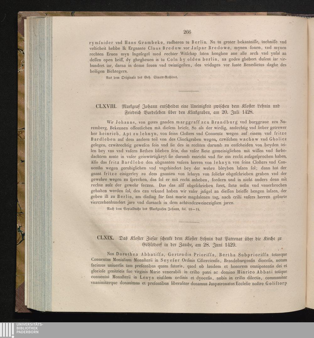 CLXIX. Das Kloster Ziesar schenkt dem Kloster Lehnin das Patronat über die Kirche[...]
