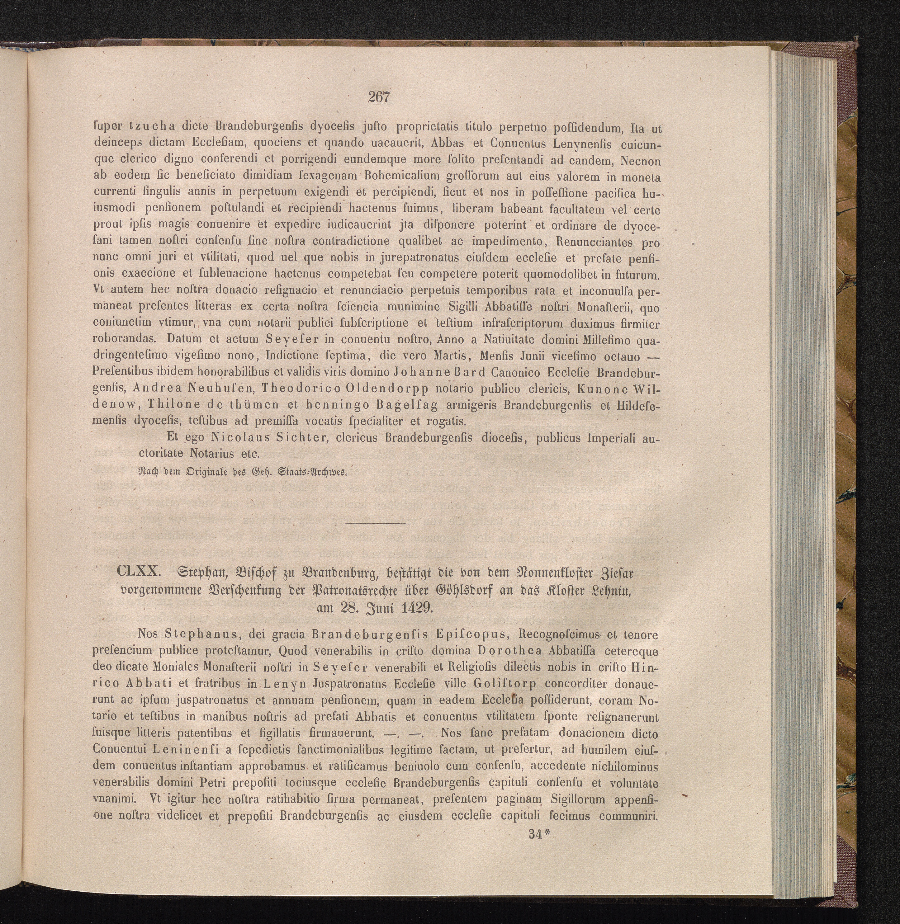 CLXX. Stephan, Bischof zu Brandenburg, bestätigt die von dem Nonnenkloster Ziesar[...]