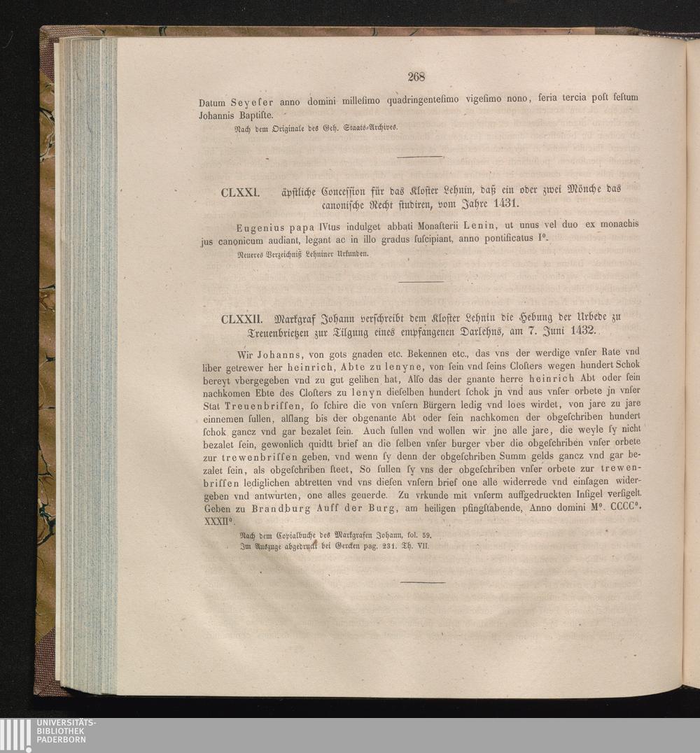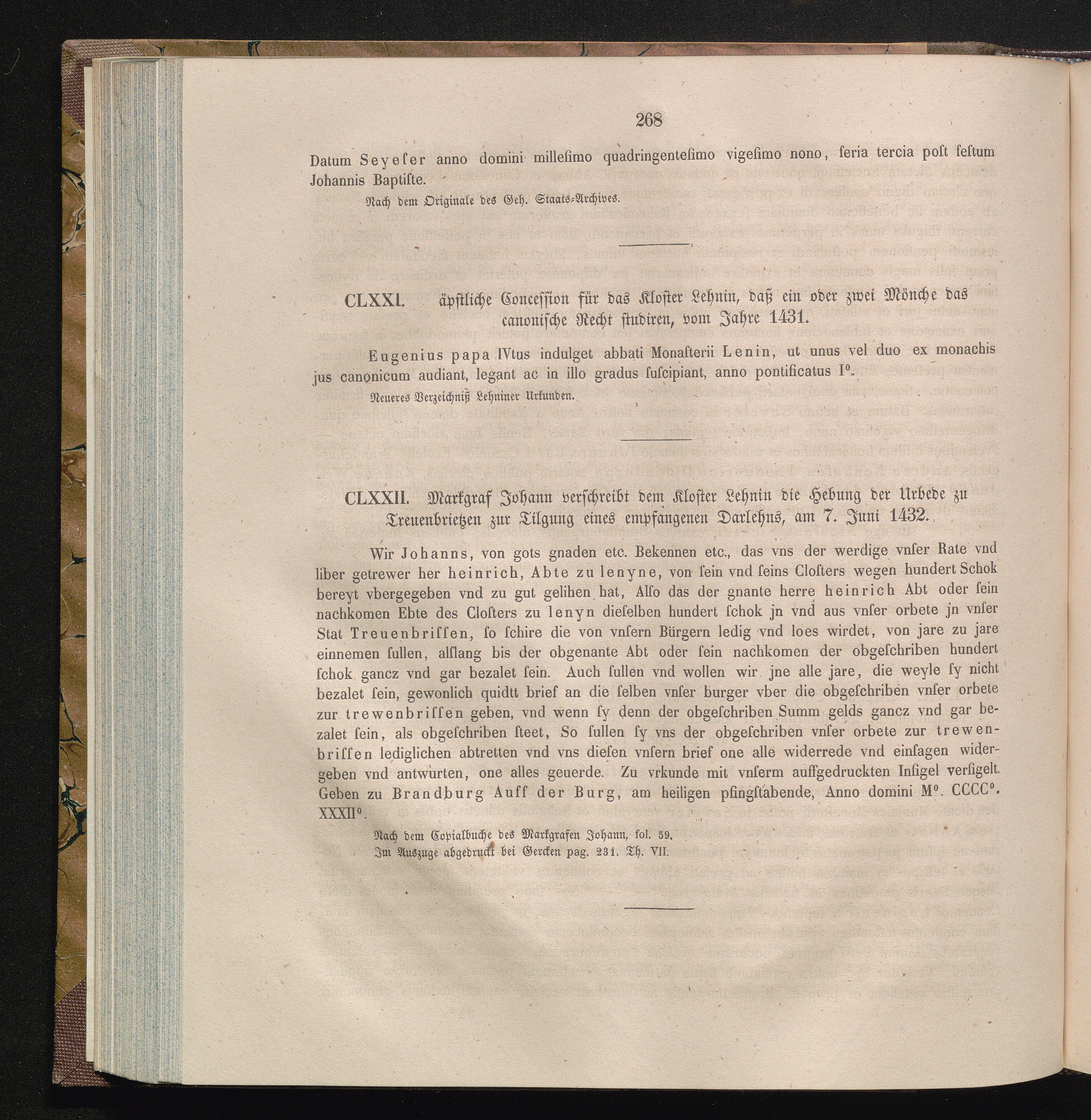 CLXXII. Markgraf Johann verschreibt dem Kloster Lehnin die Hebung der Urbede zu Treuenbrietzen[...]