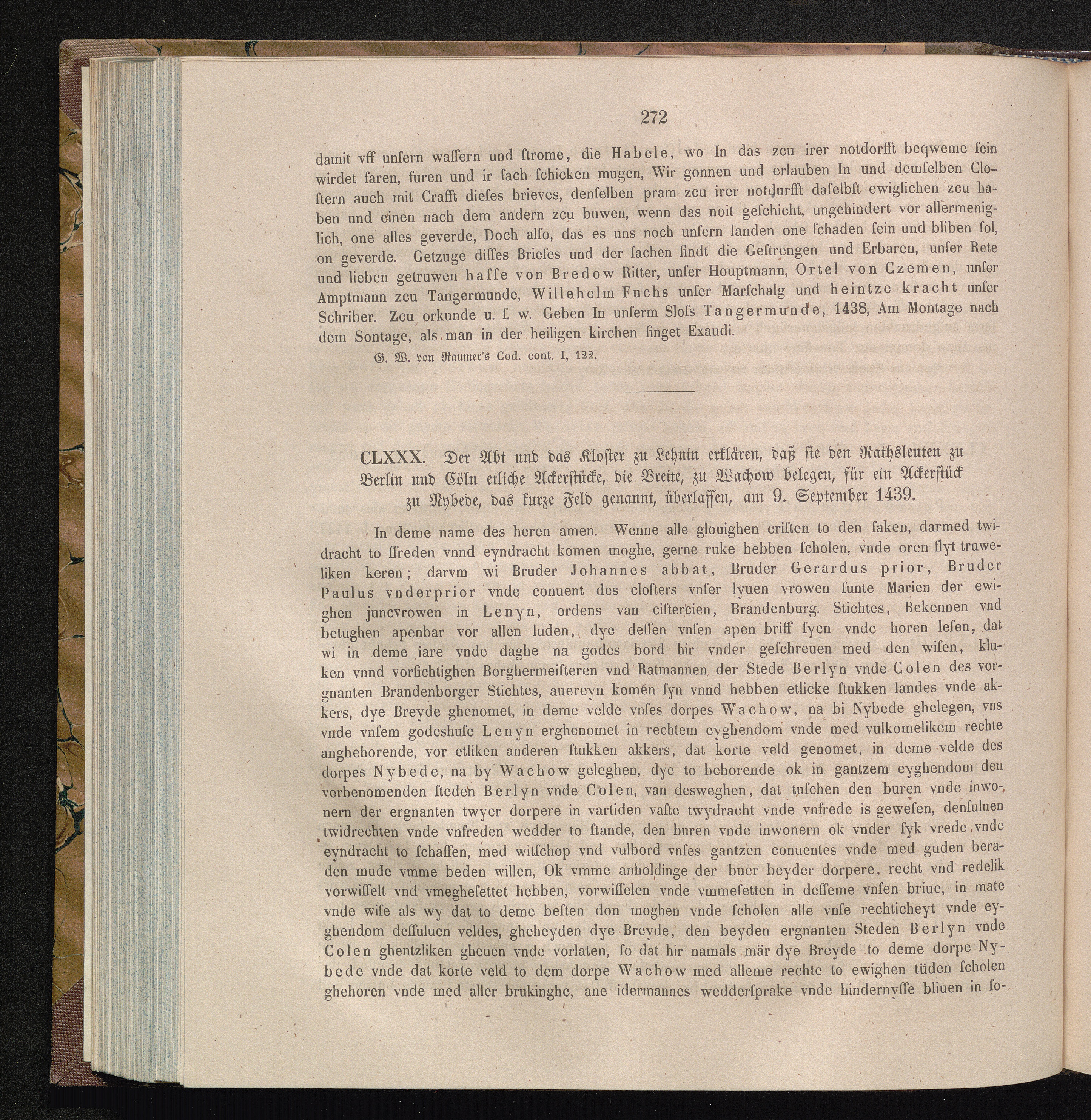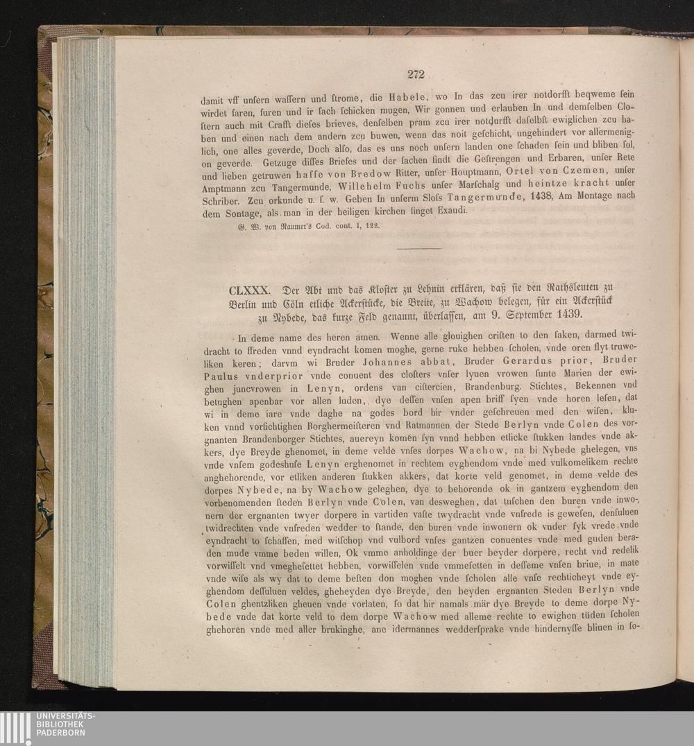 CLXXX. der Abt und das Kloster zu Lehnin erklären, daß sie den Rathsleuten zu Berlin[...]