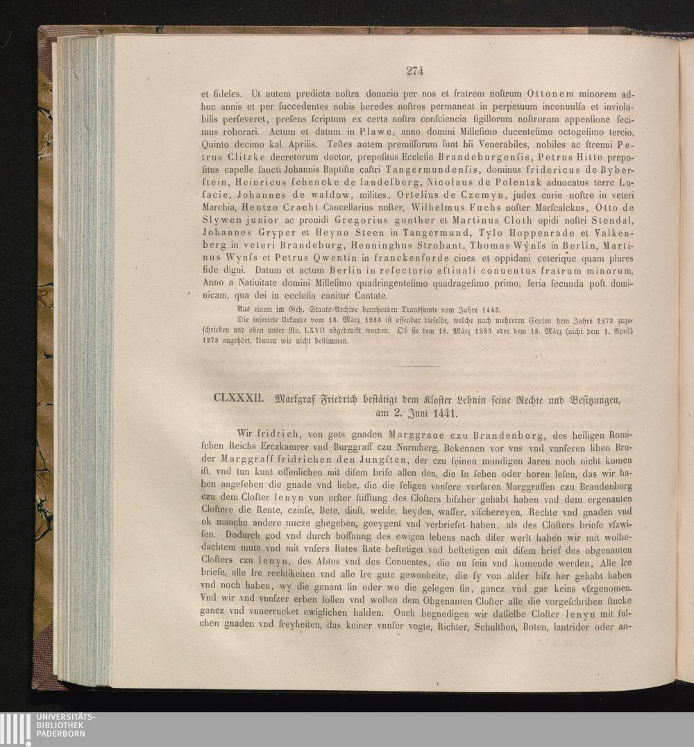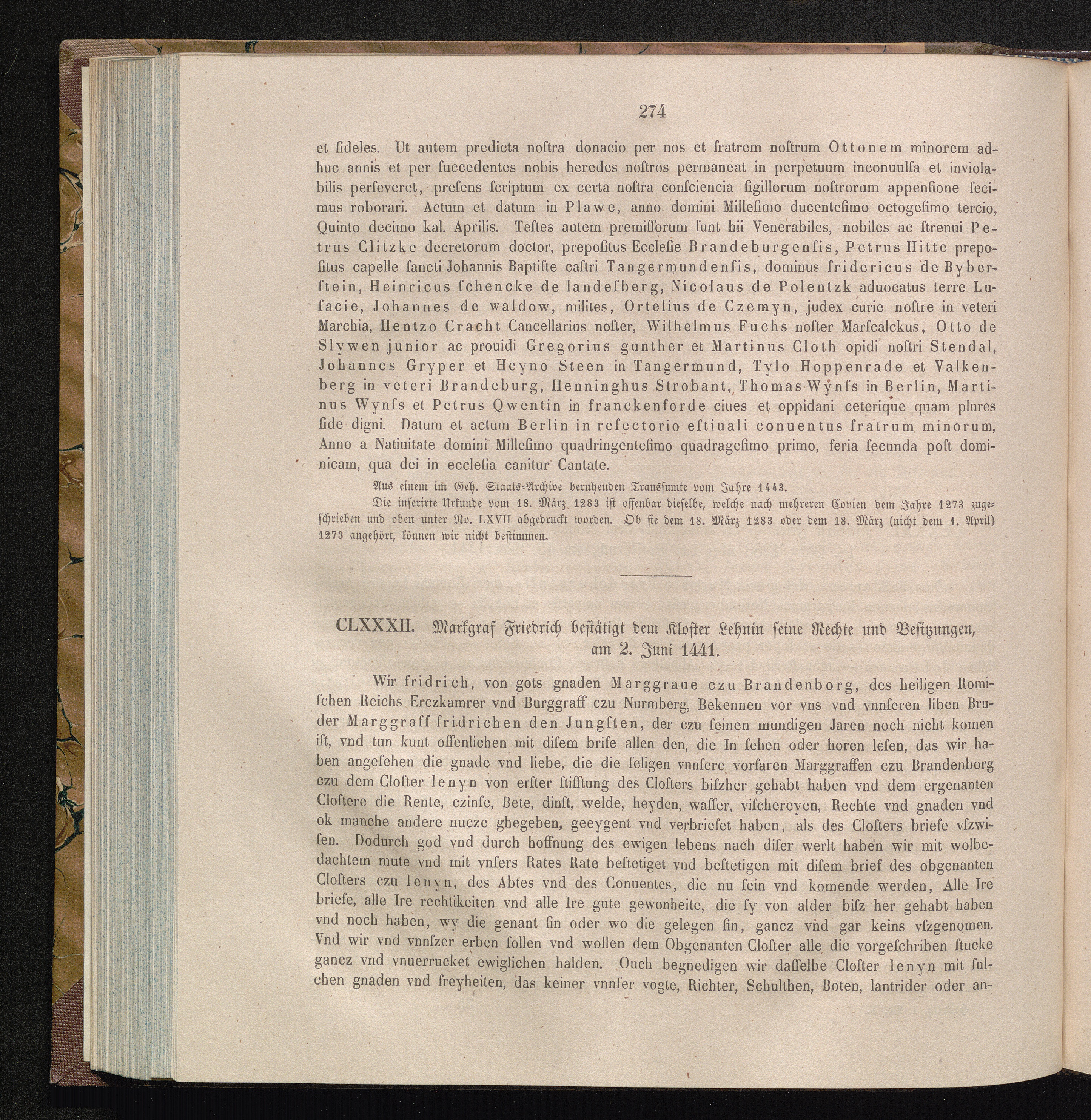 CLXXXII. Markgraf Friedrich bestätigt dem Kloster Lehnin seine Rechte und Besitzungen,[...]