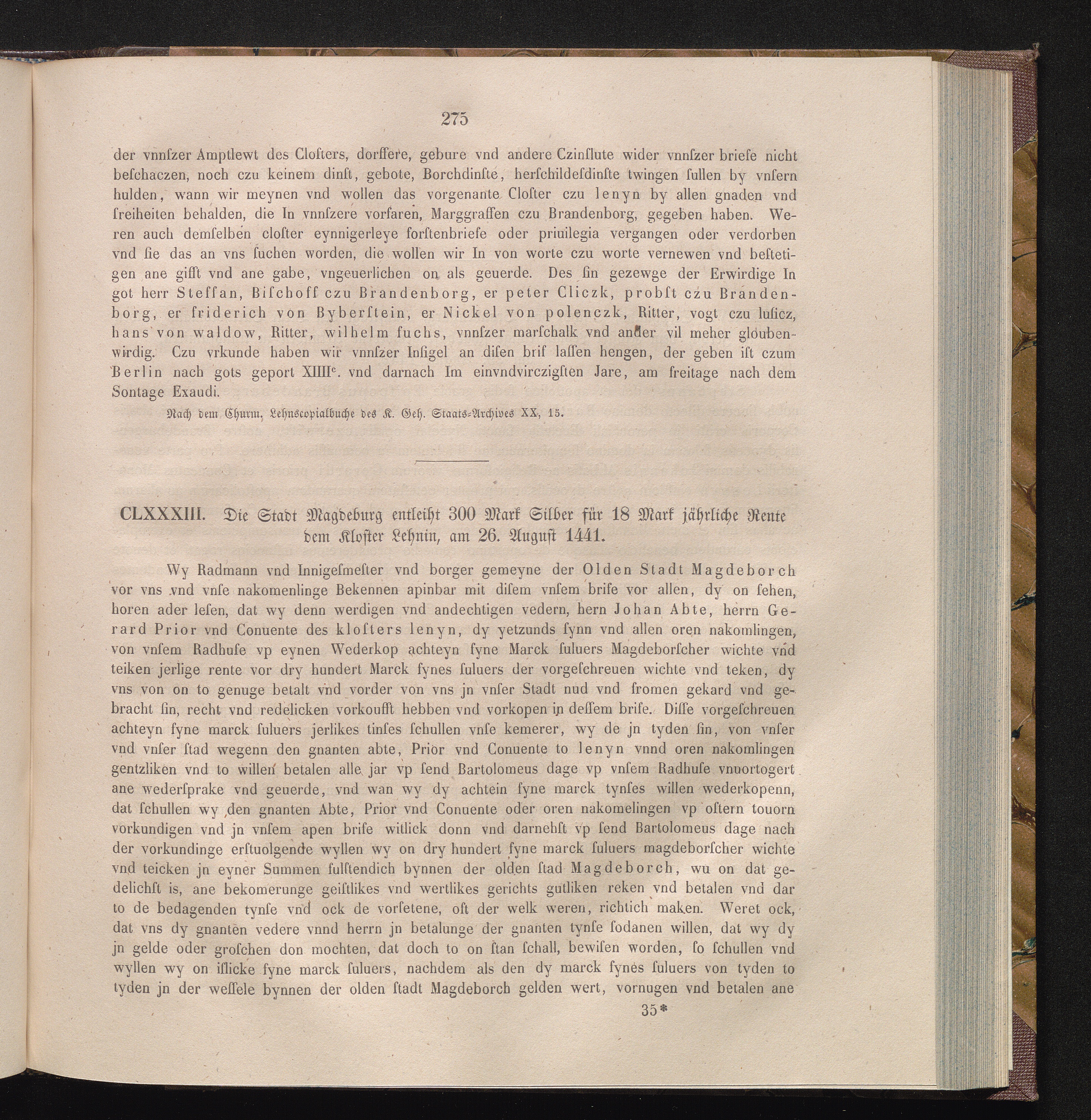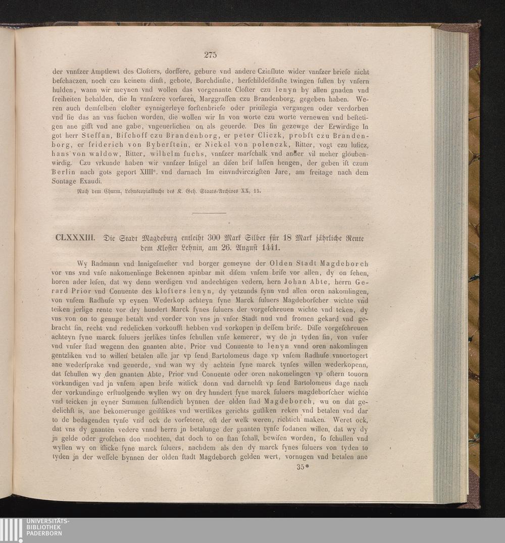CLXXXIII. Die Stadt Magdeburg entleiht 300 Mark Silber für 18 Mark jährliche Rente[...]