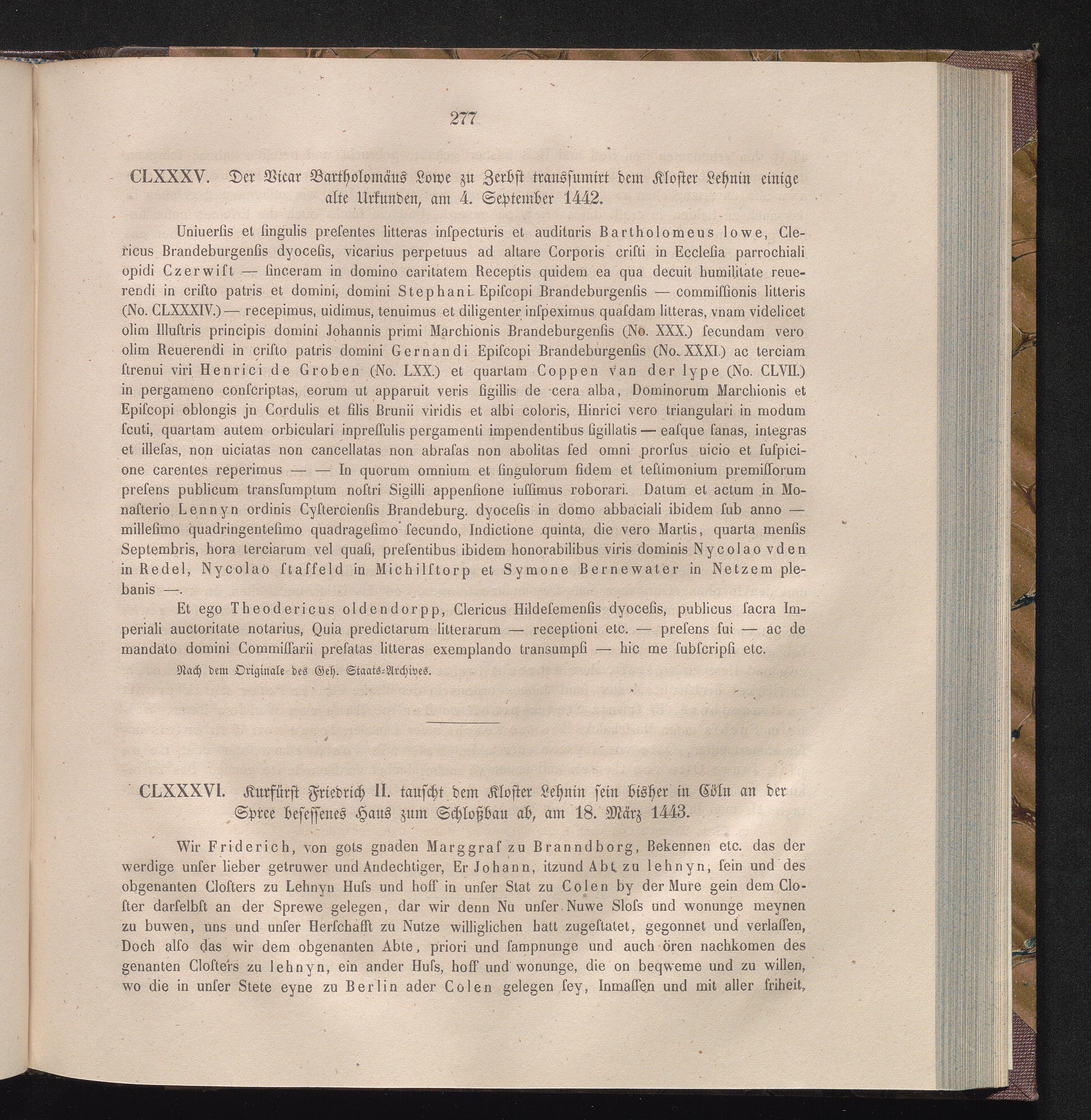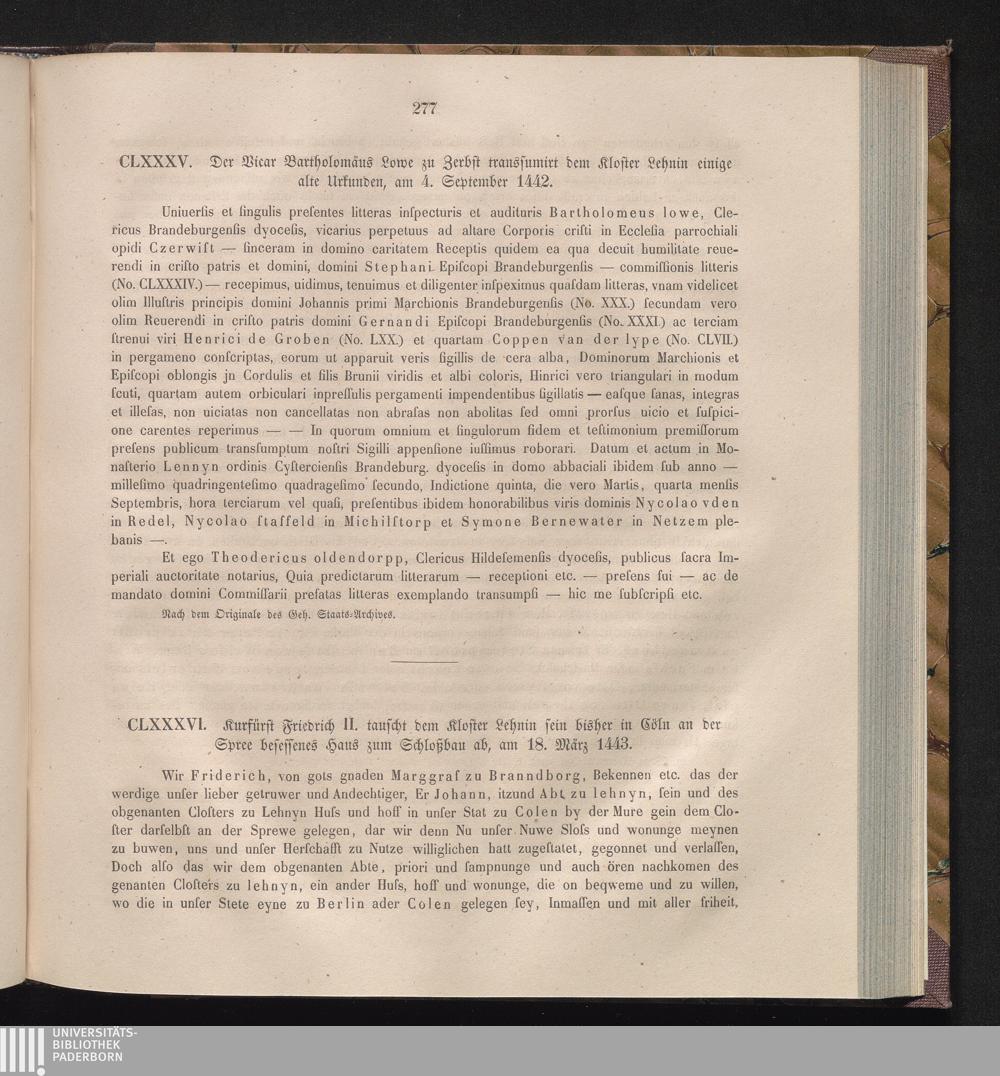 CLXXXVI. Kurfürst Friedrich II. tauscht dem Kloster Lehnin sein bisher in Cöln an[...]