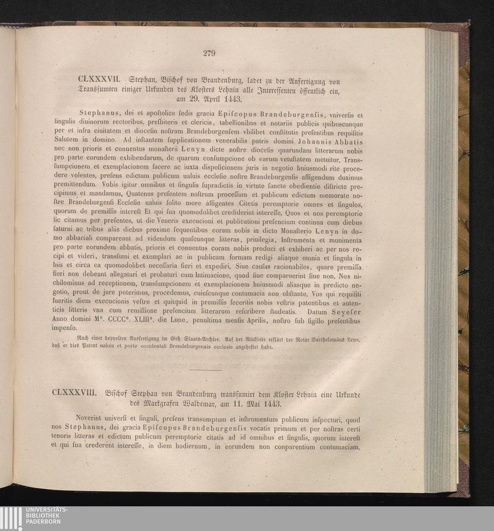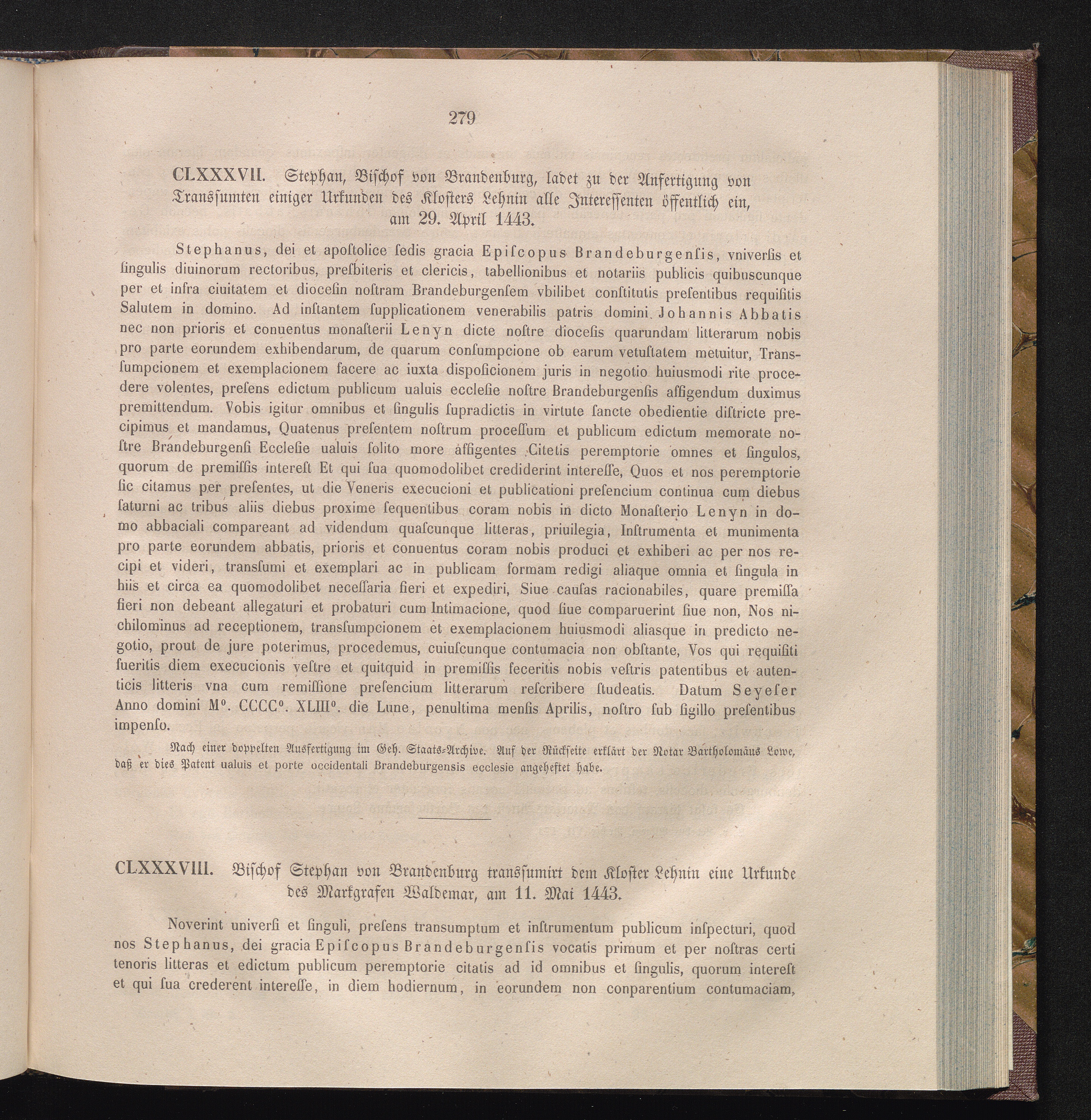CLXXXVIII. Bischof Stephan von Brandenburg transsumirt dem Kloster Lehnin eine Urkunde[...]