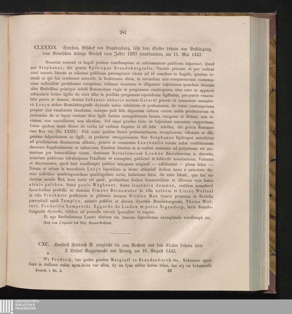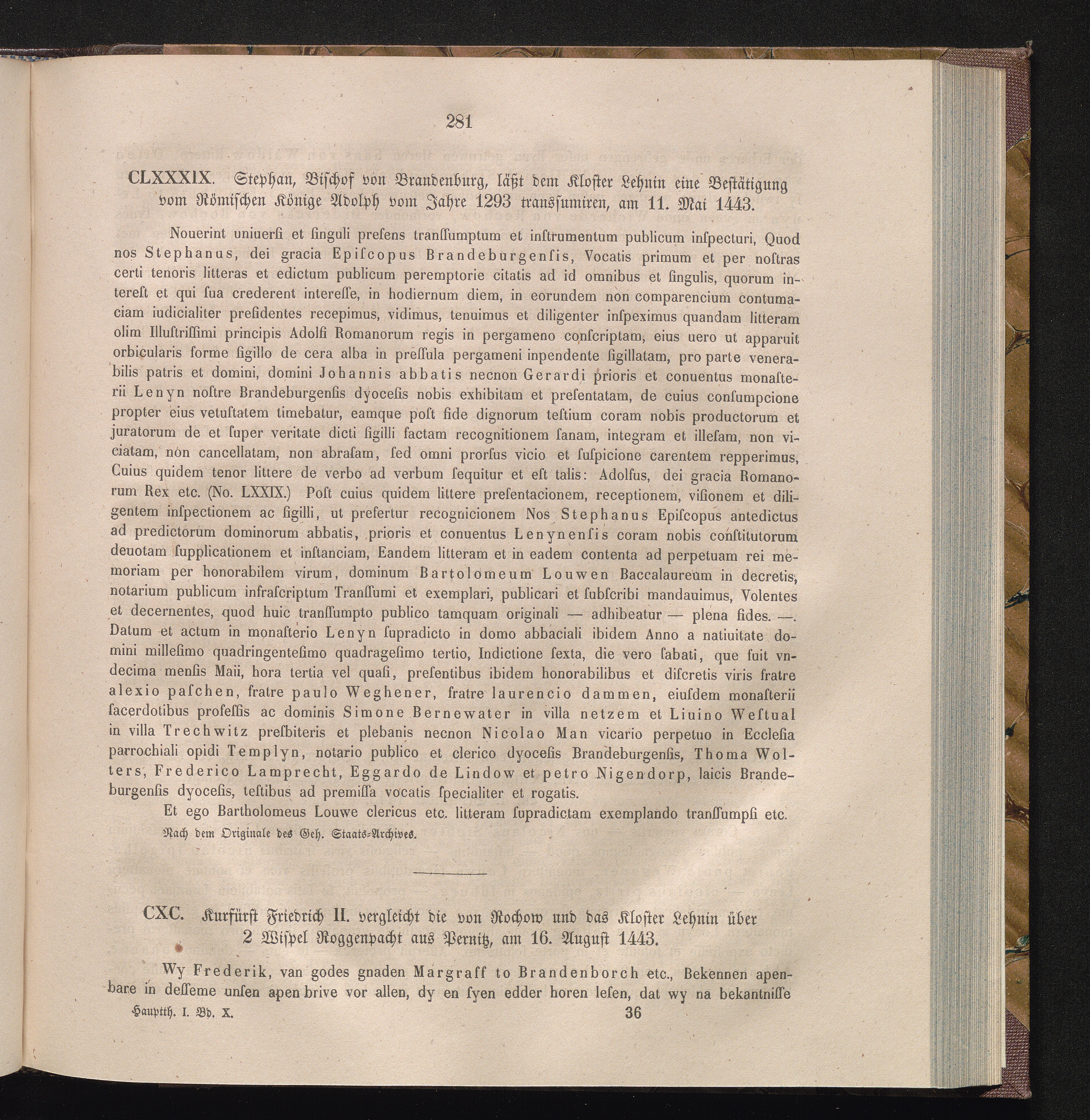 CXC. Kurfürst Friedrich II. vergleicht die von Rochow und das Kloster Lehnin über[...]