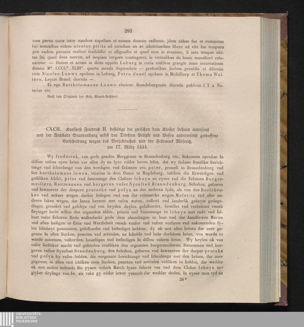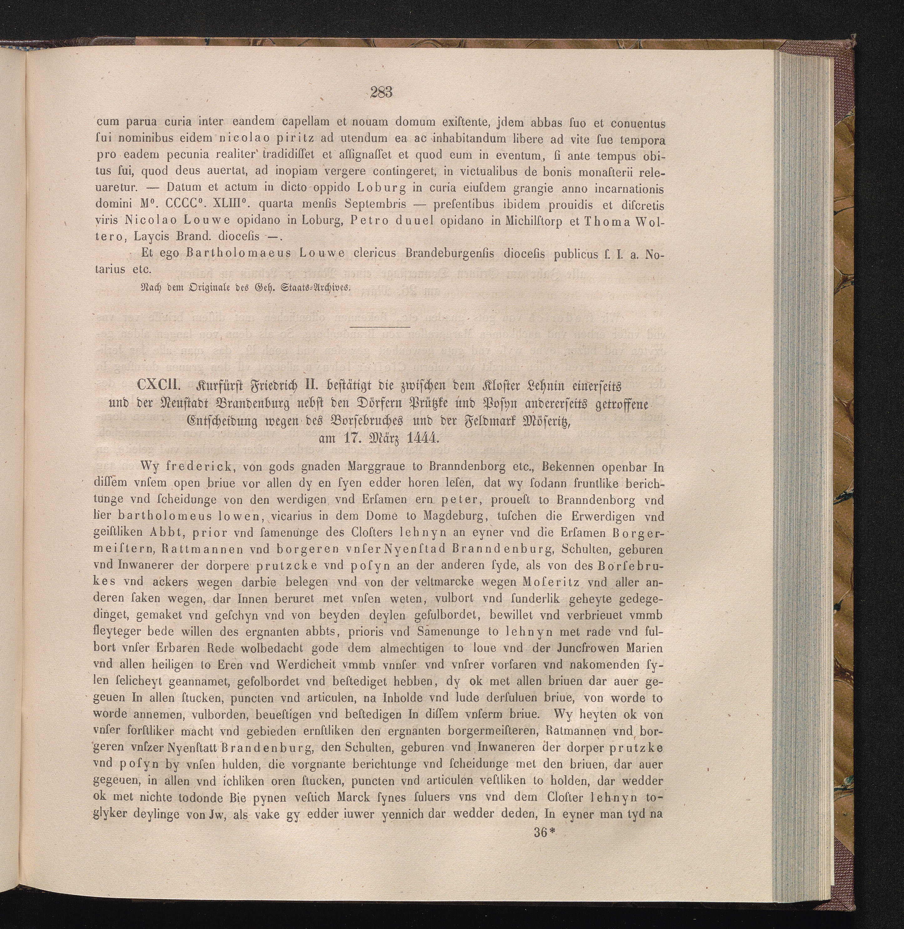 CXCII. Kurfürst Friedrich II. bestätigt die zwischen dem Kloster Lehnin einerseits[...]