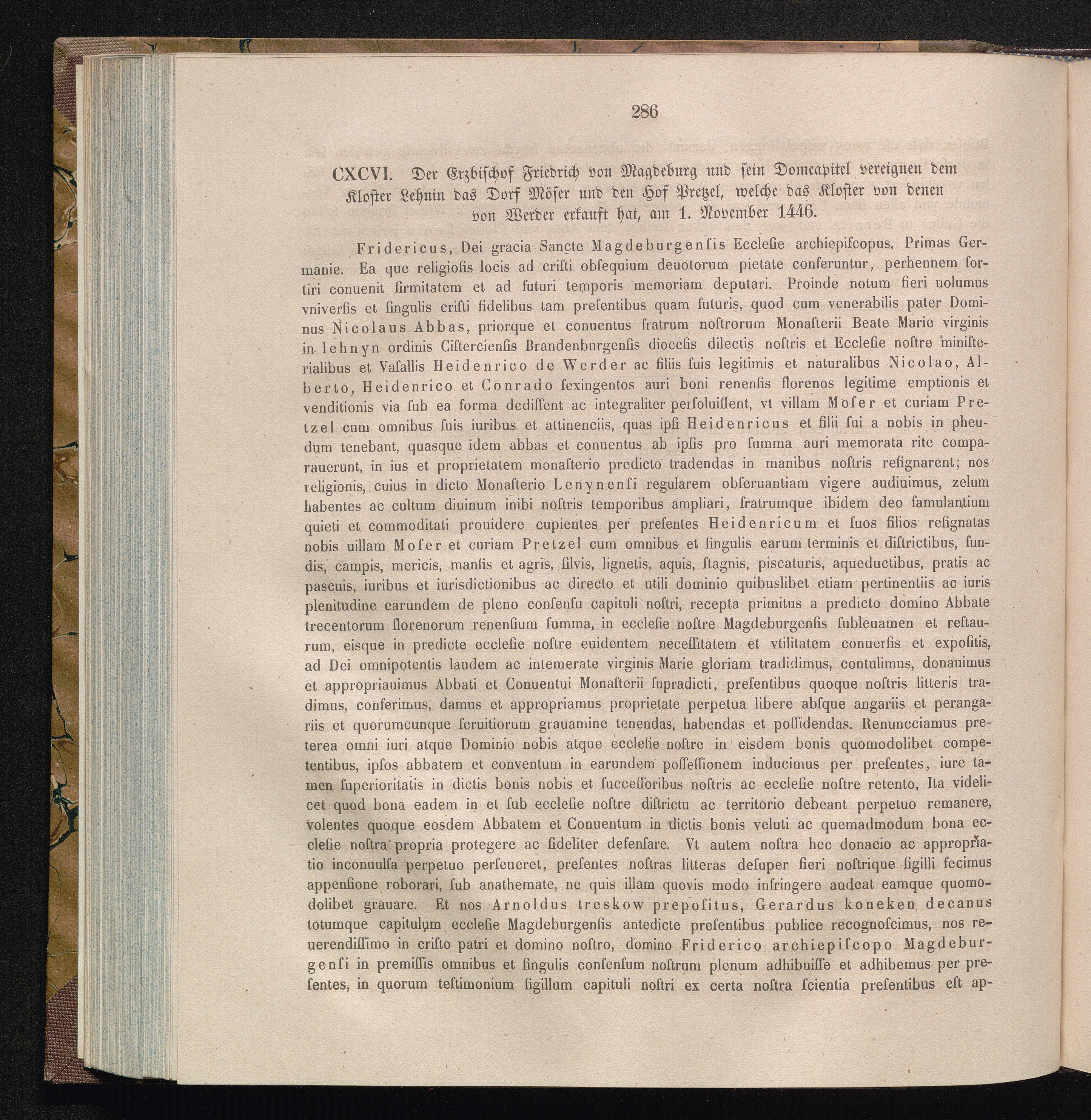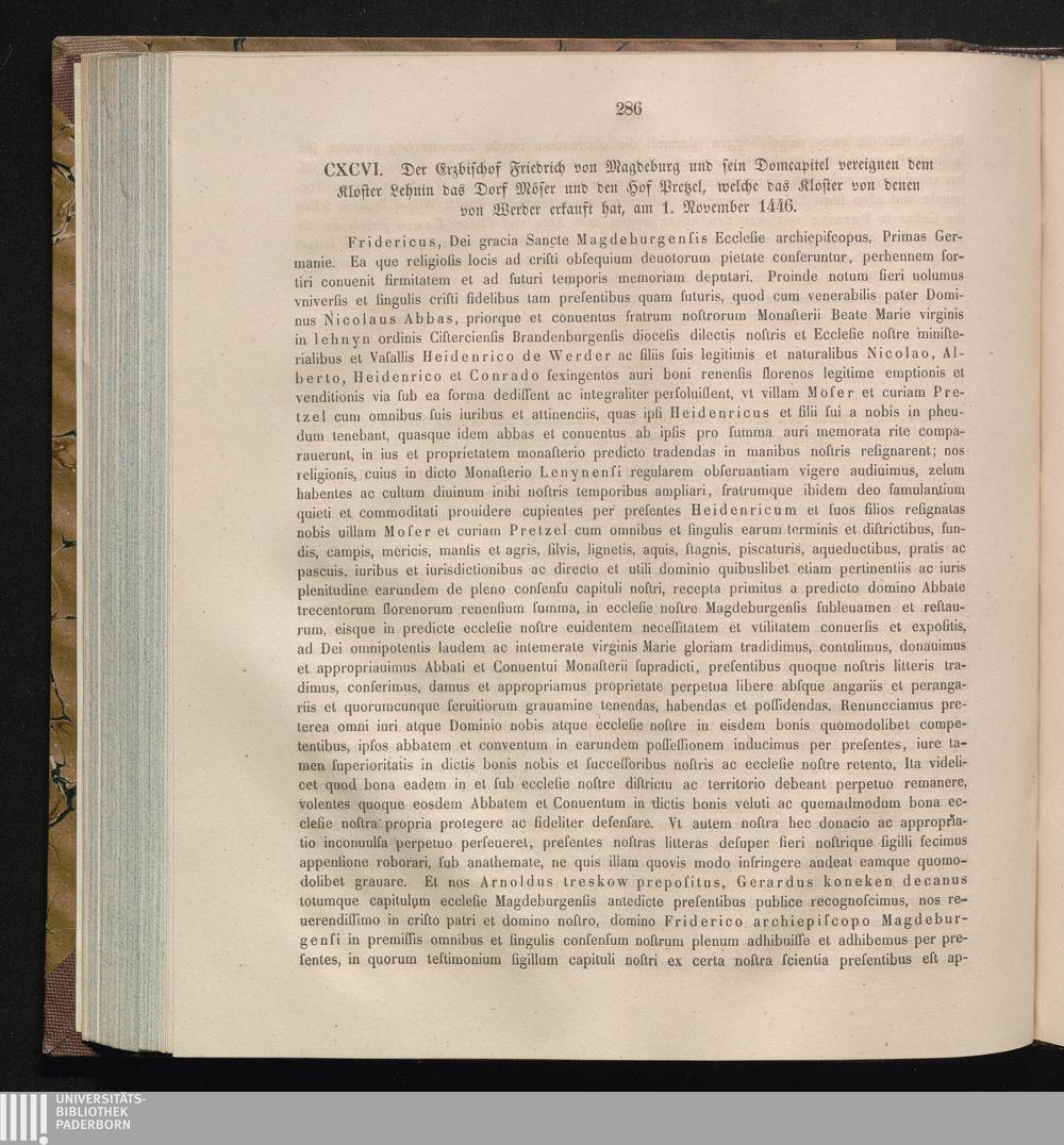 CXCVI. Der Erzbischof Friedrich von Magdeburg und sein Domcapitel vereignen dem Kloster[...]