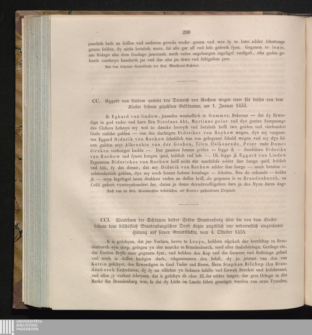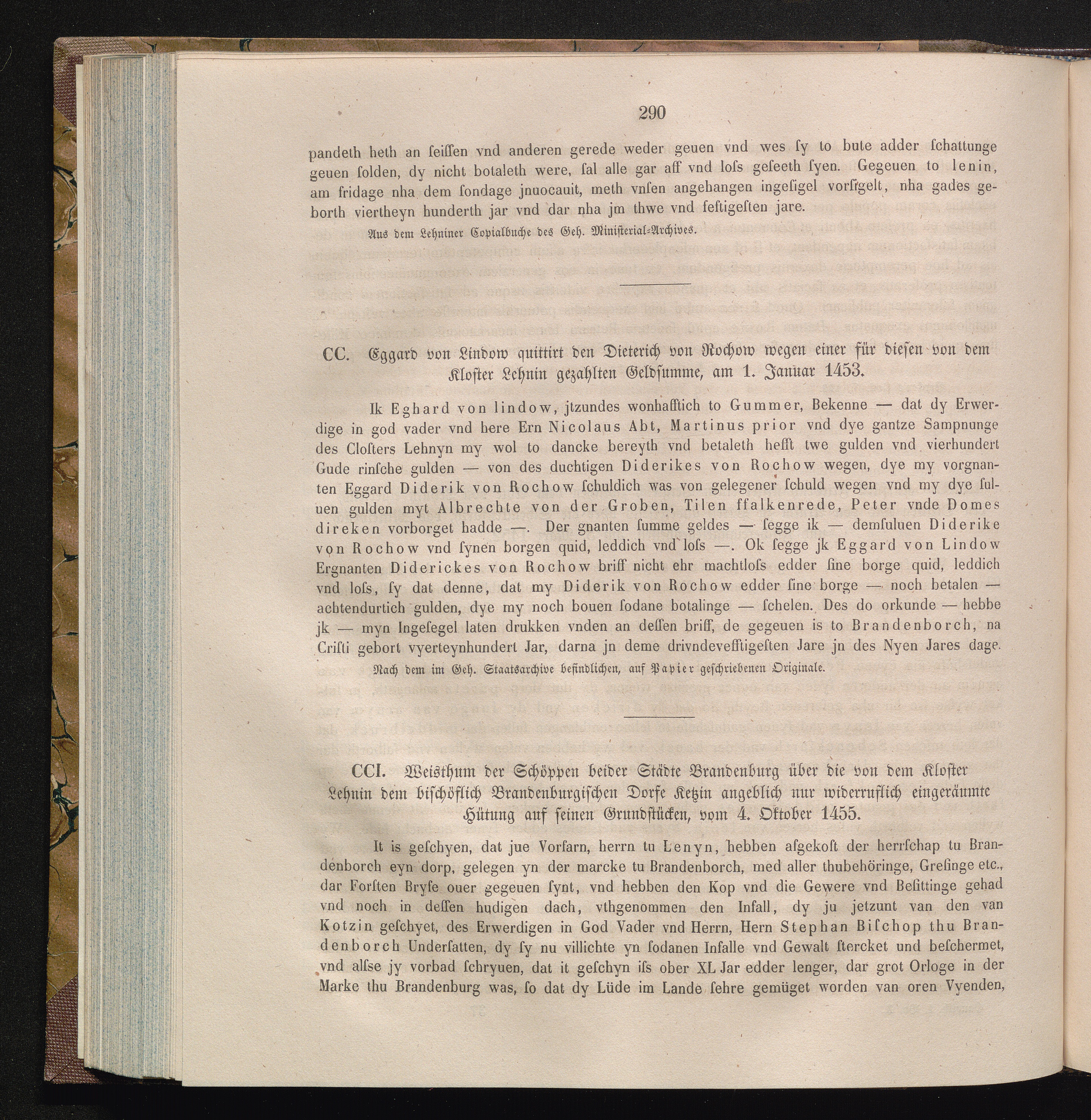 CCI. Weisthum der Schöppen beider Städte Brandenburg über die von dem Kloster Lehnin[...]