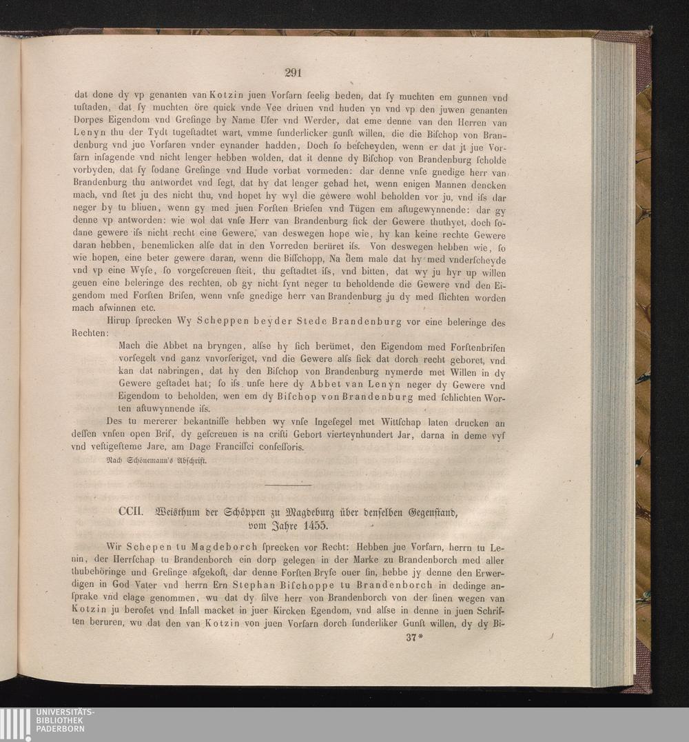 CCII. Weisthum der Schöppen zu Magdeburg über denselben Gegenstand, vom Jahre 14[...]