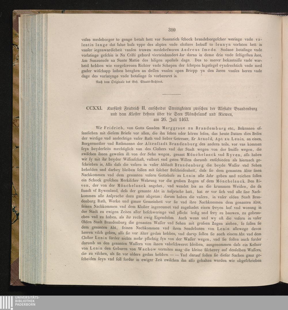CCXXI. Kurfürst Friedrich II. entscheidet Streitigkeiten zwischen der Altstadt Brandenburg[...]