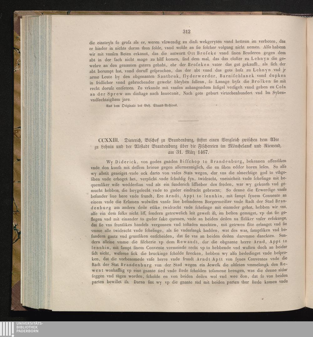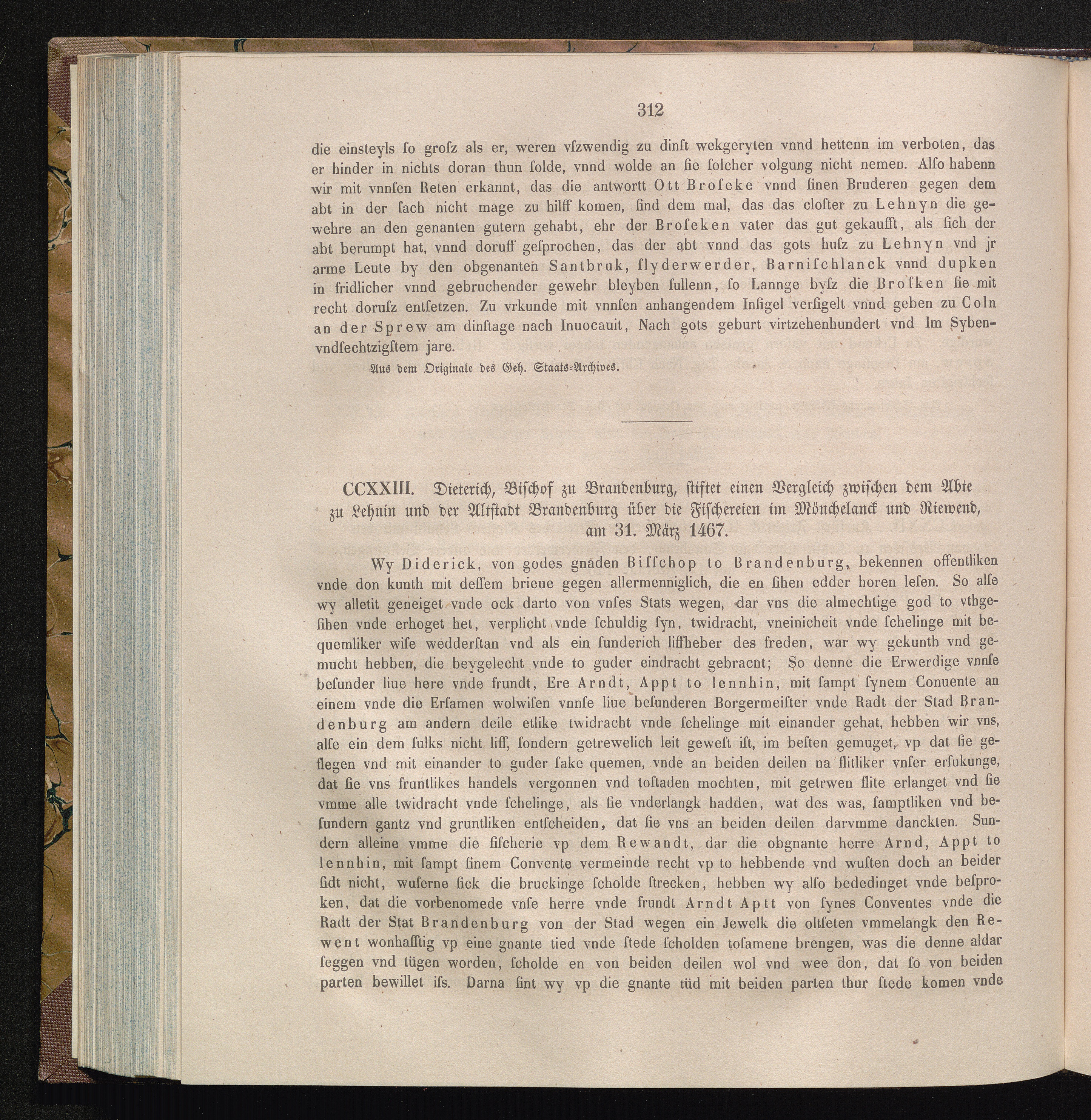 CCXXIII. Dieterich Bischof zu Brandenburg stiftet einen Vergleich zwischen dem Abte[...]