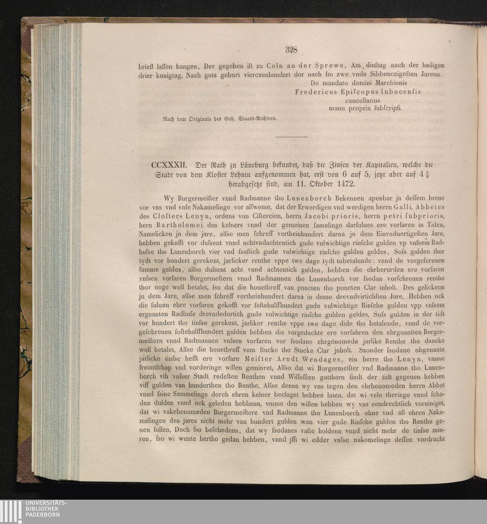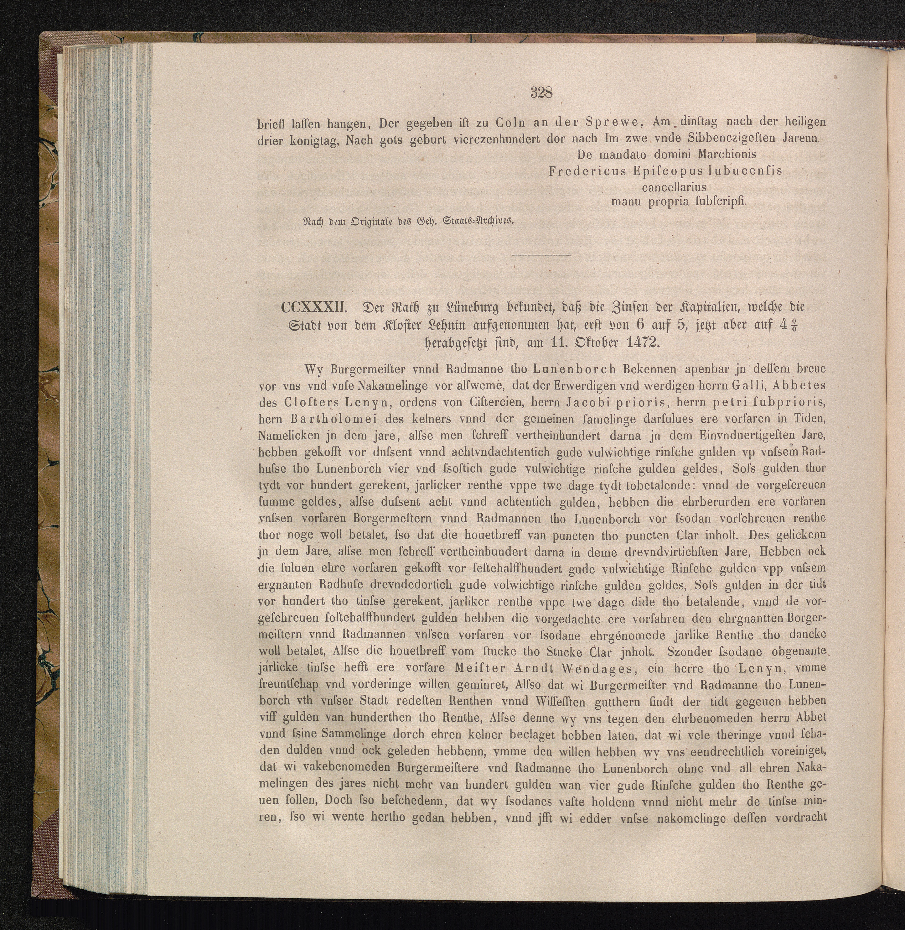 CCXXXII. Der Rath zu Lüneburg bekundet, daß die Zinsen der Kapitalien, welche die[...]