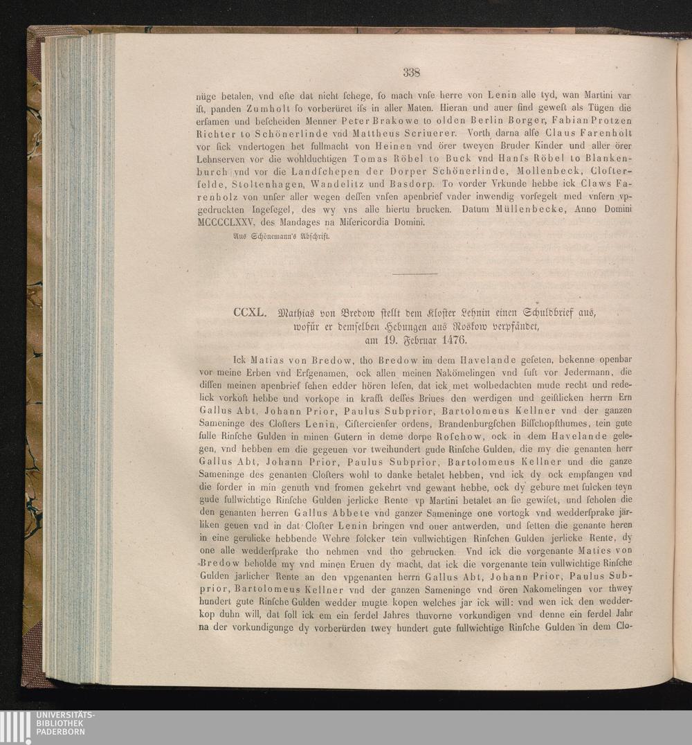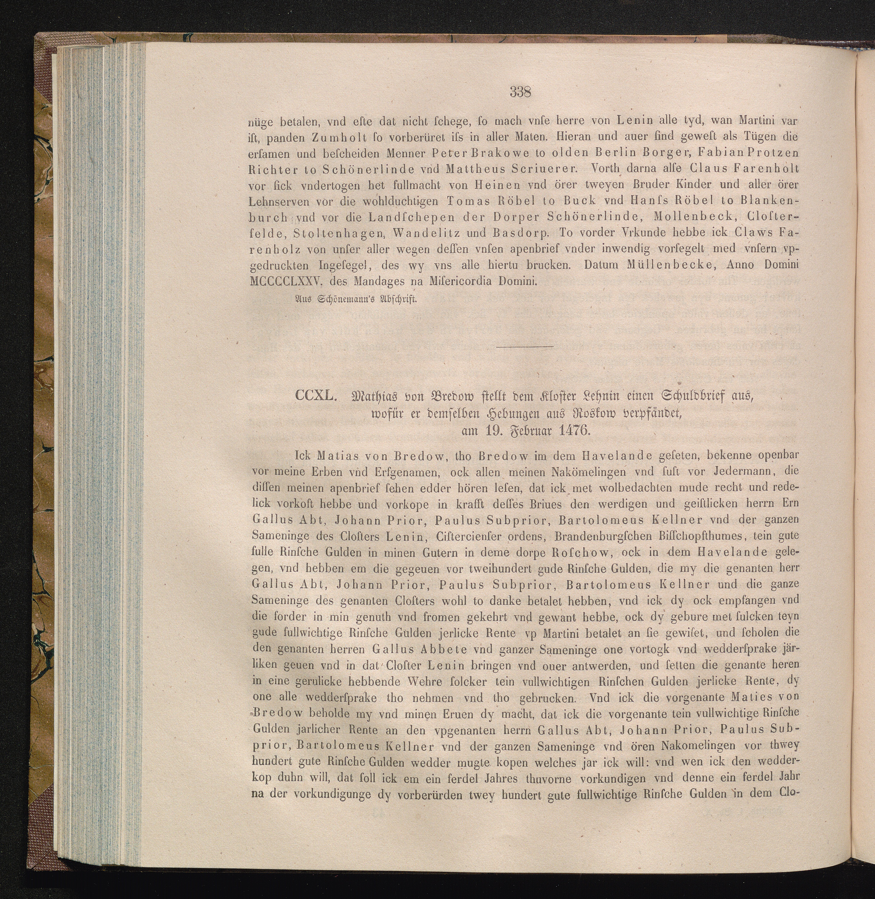 CCXL. Mathias von Bredow stellt dem Kloster Lehnin einen Schuldbrief aus, wofür er[...]