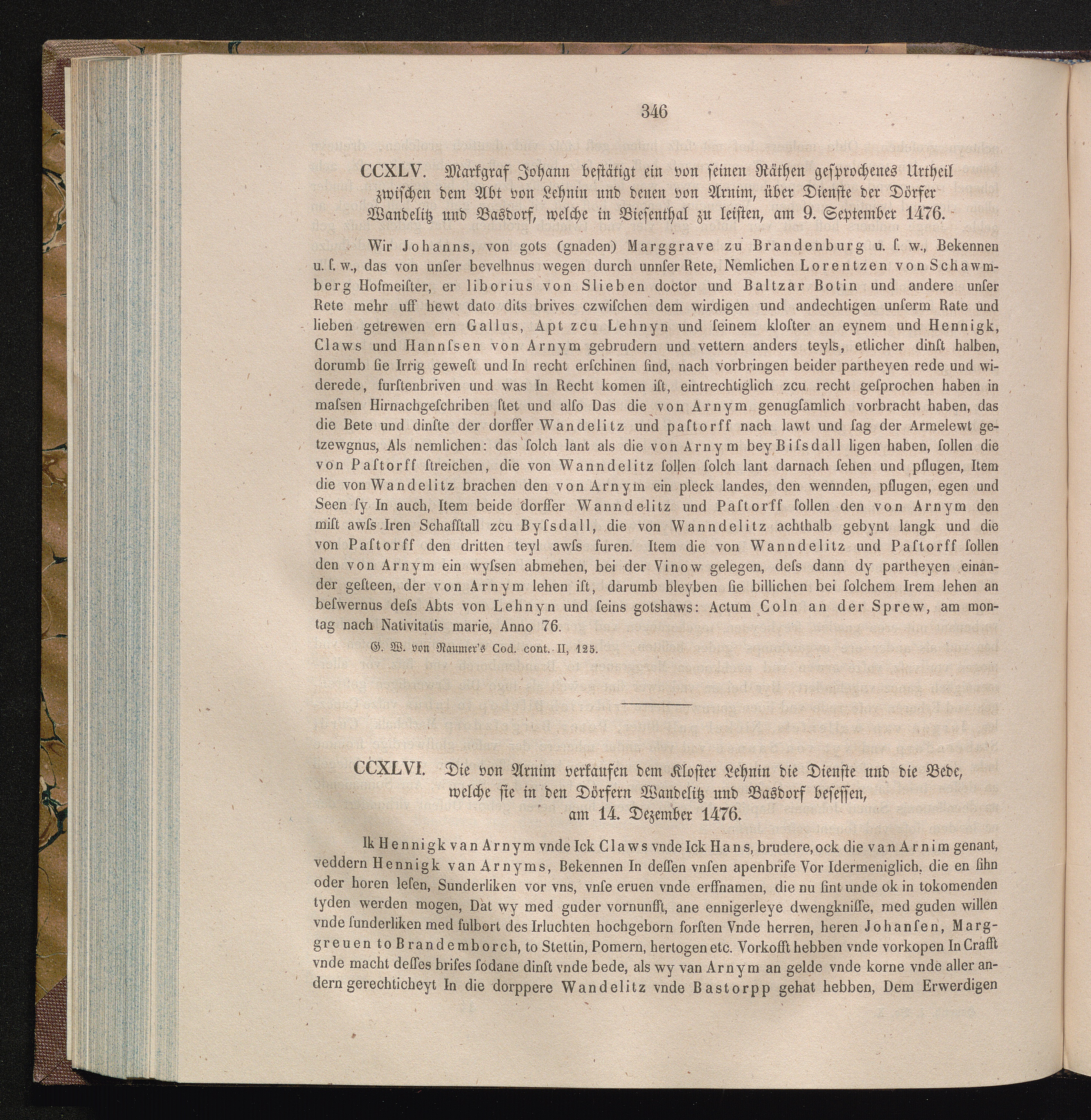 CCXLVI. Die von Arnim verkaufen dem Kloster Lehnin die Dienste und die Bede, welche[...]