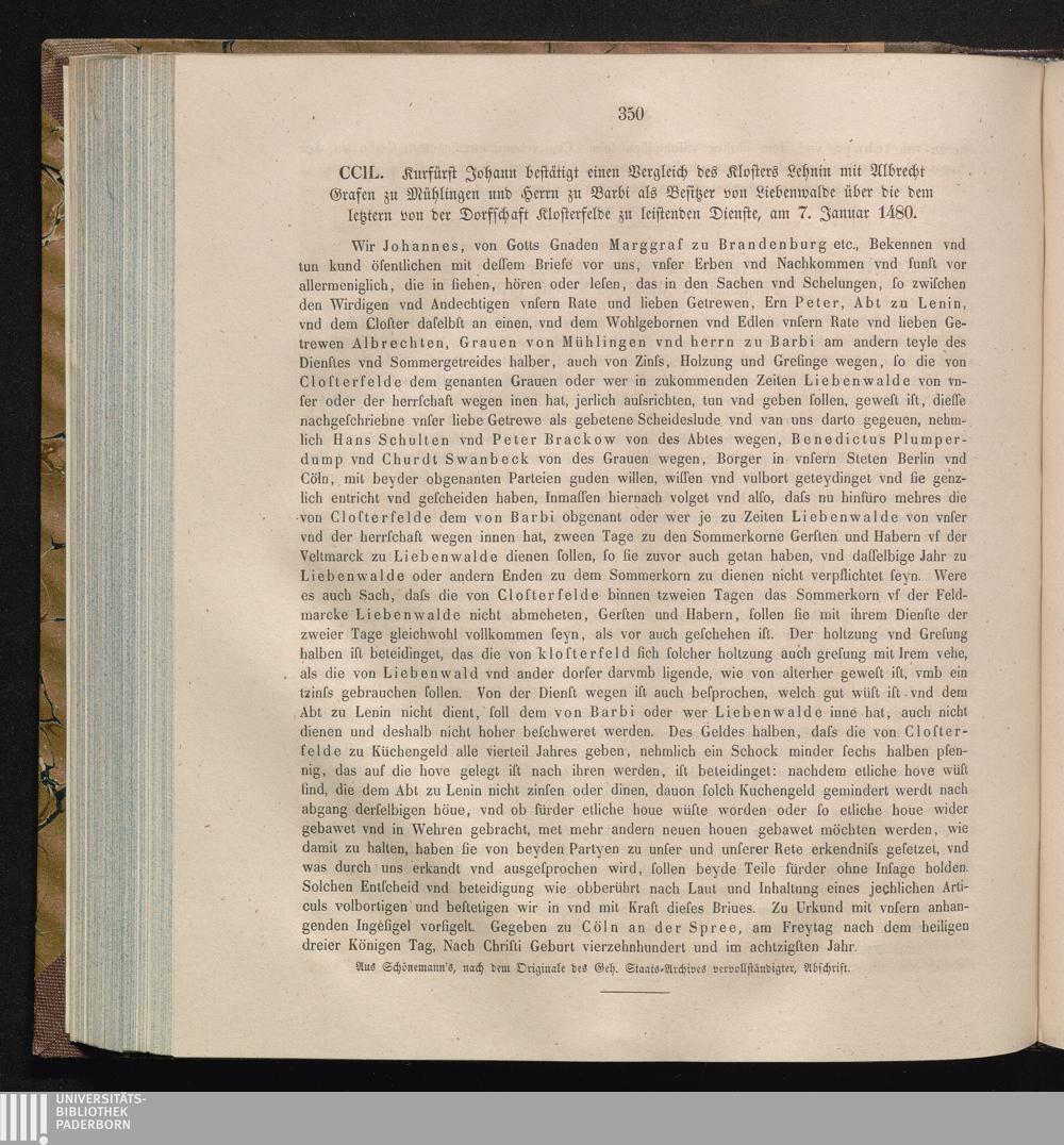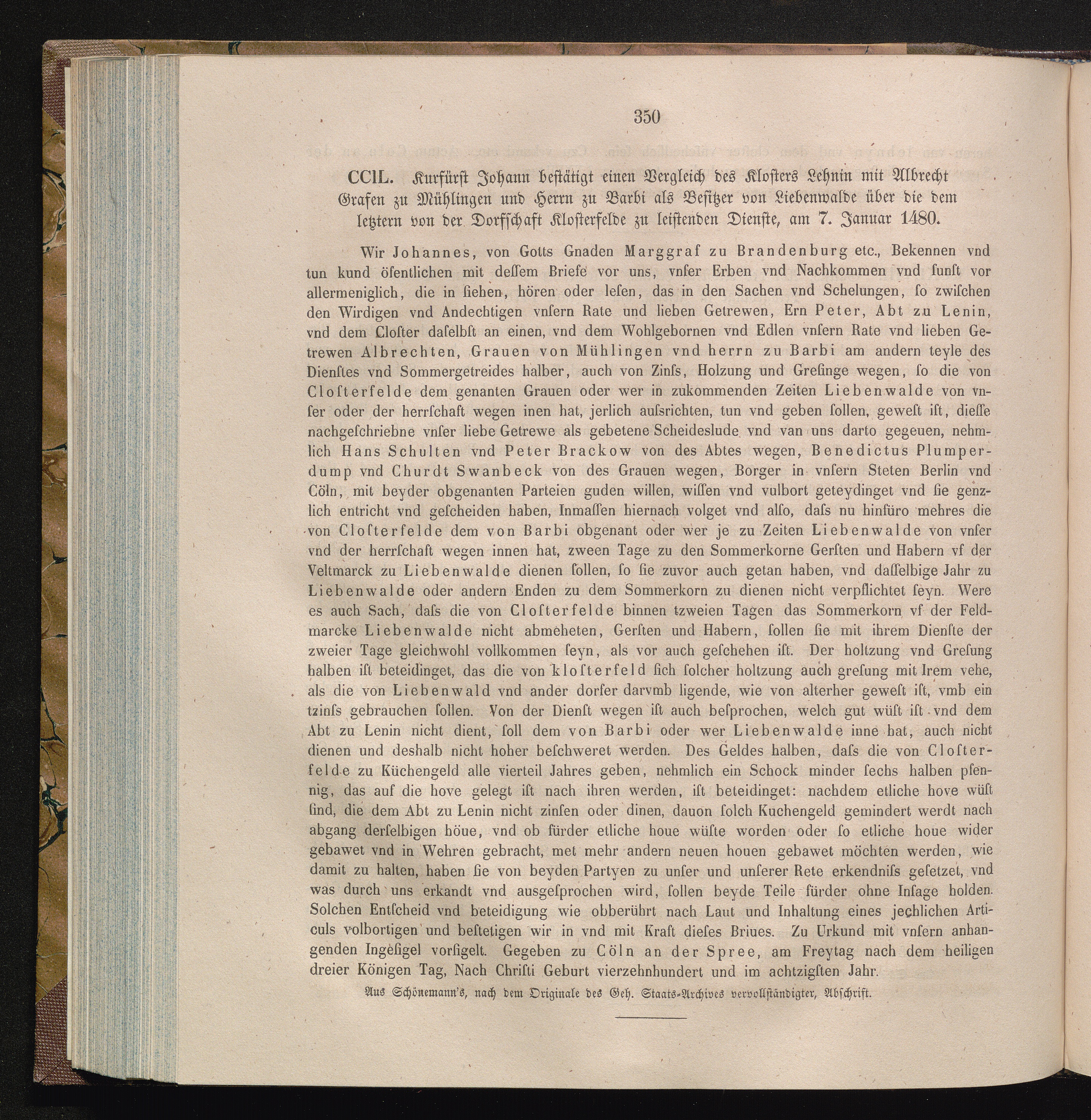 CCIL. Kurfürst Johann bestätigt einen Vergleich des Klosters Lehnin mit Albrecht[...]