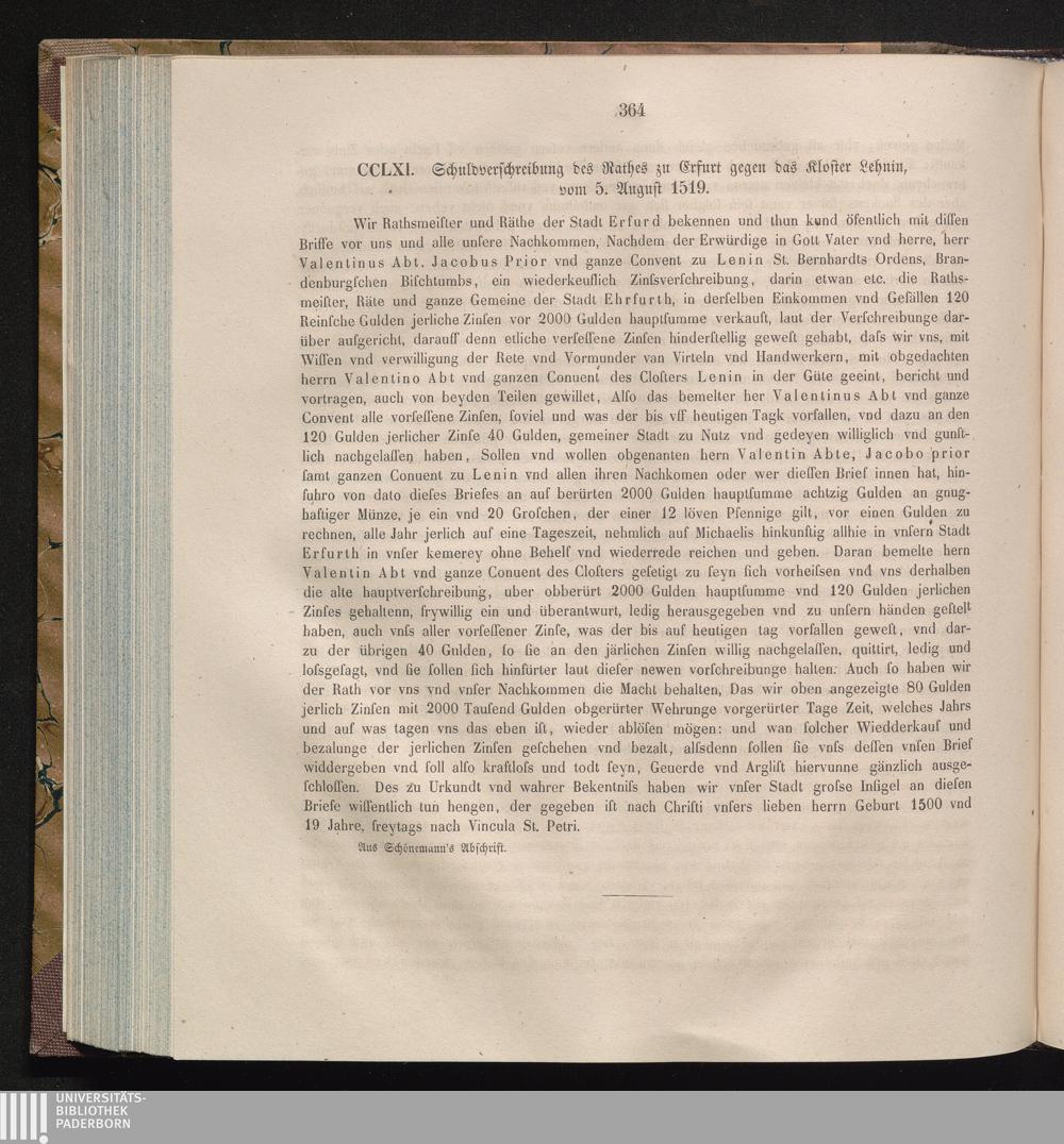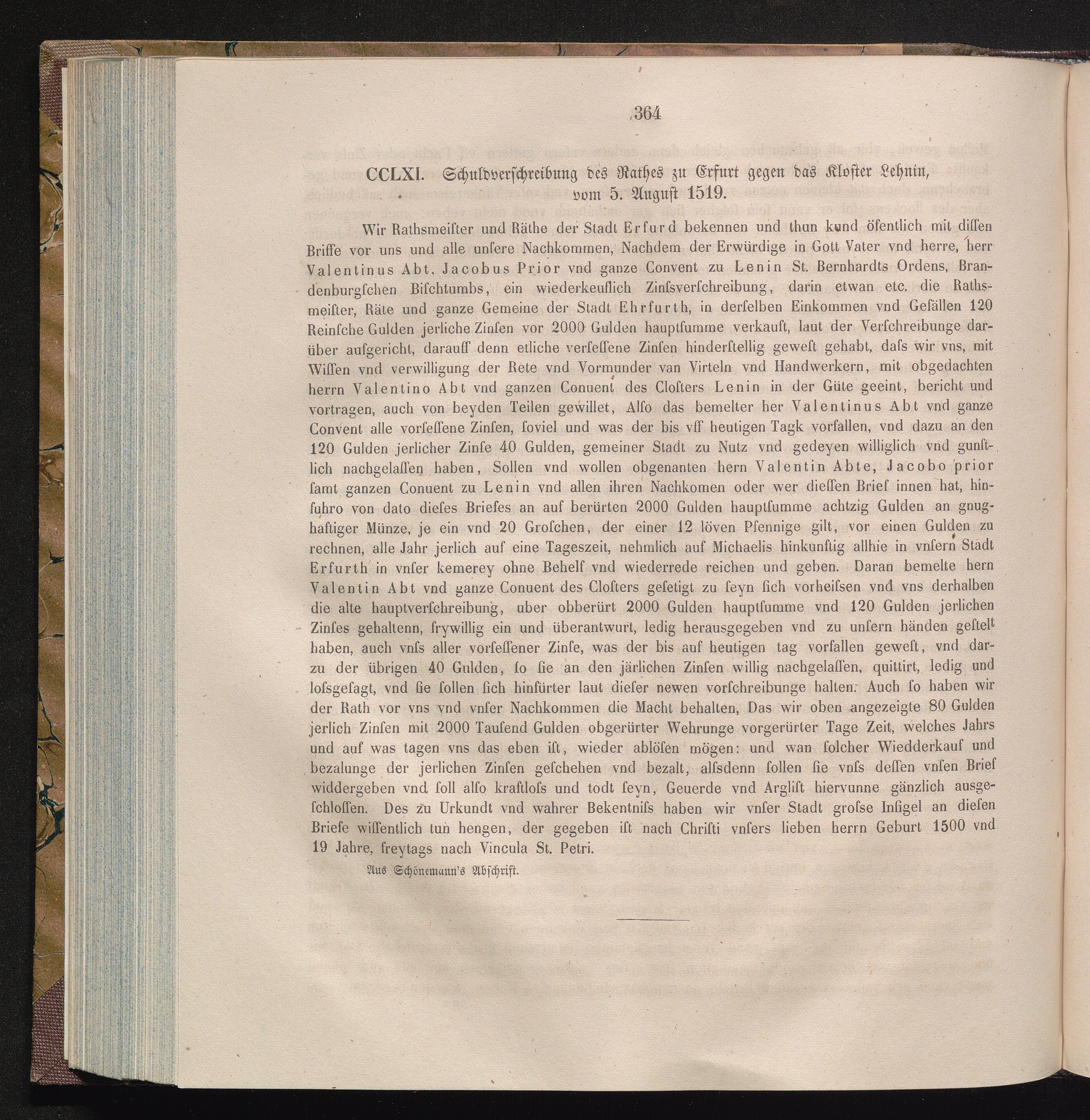 CCLXI. Schuldverschreibung des Rathes zu Erfurt gegen das Kloster Lehnin, vom 5.[...]