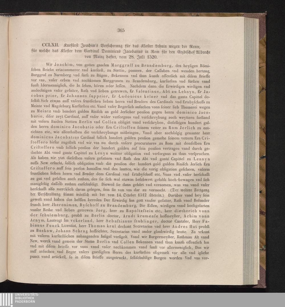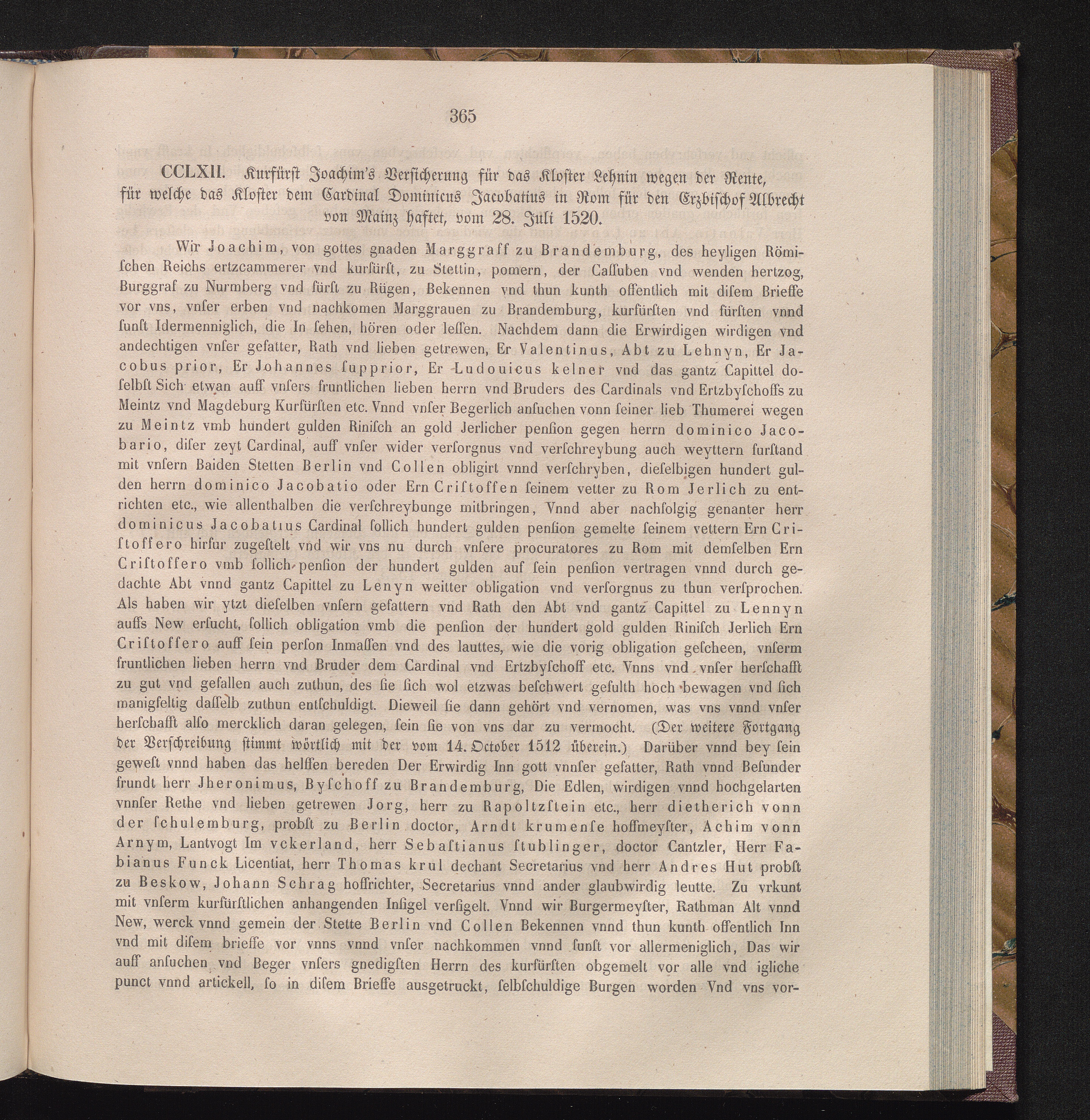 CCLXII. Kurfürst Joachim`s Versicherung für das Kloster Lehnin wegen der Rente, für[...]