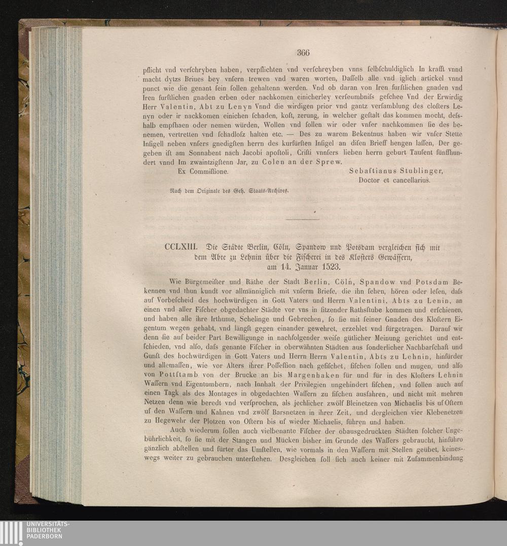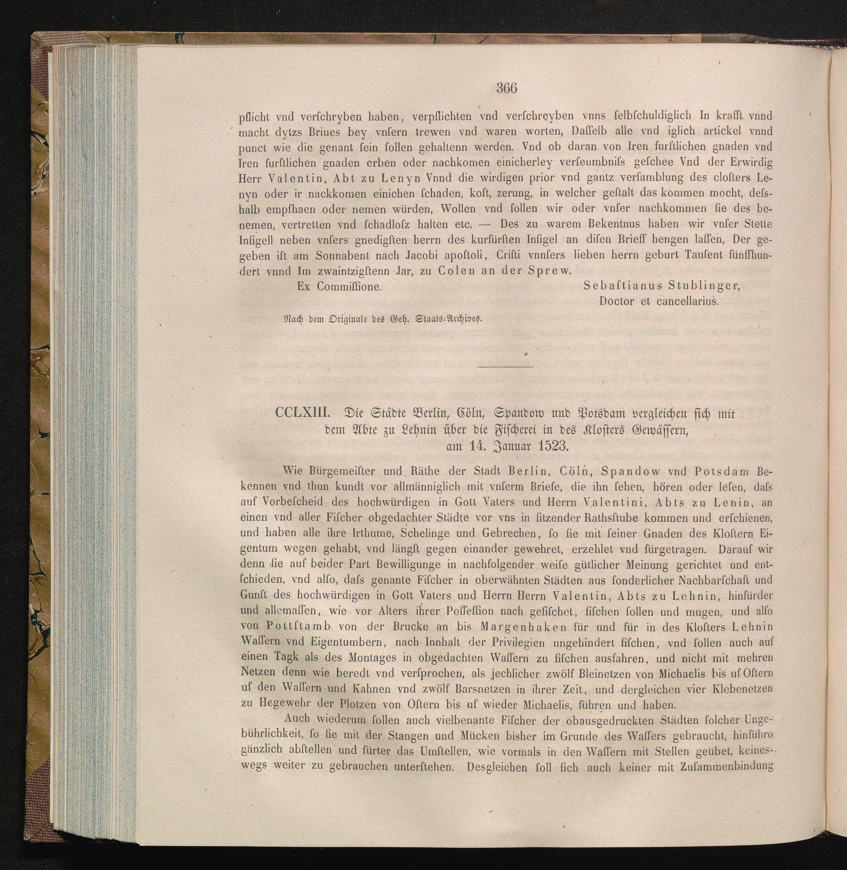 CCLXIII. Die Städte Berlin, Cöln, Spandow und Potsdam vergleichen sich mit dem Abte[...]