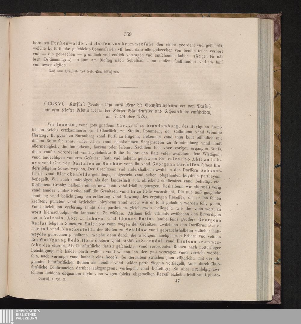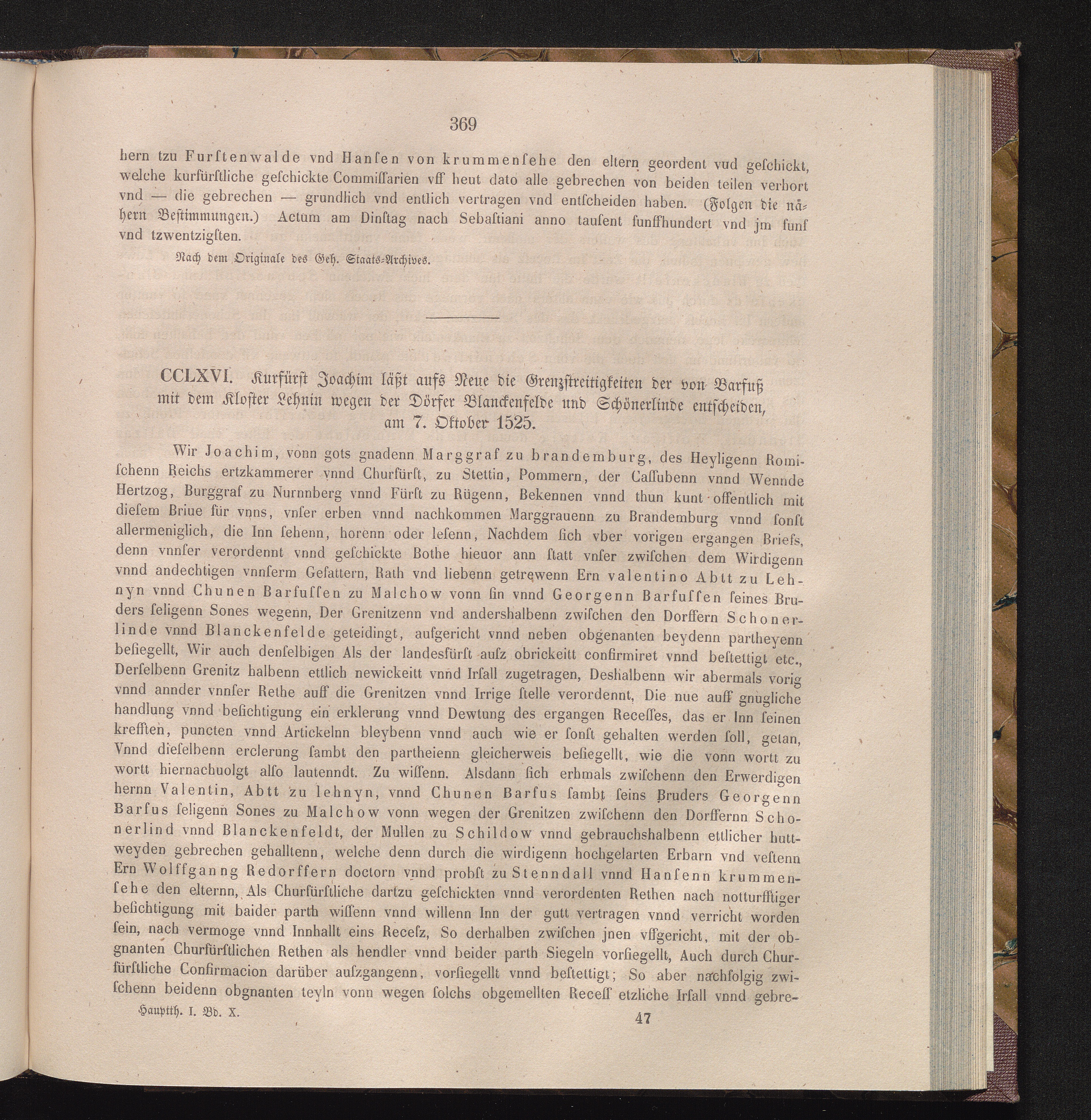 CCLXVI. Kurfürst Joachim läßt aufs Neue die Grenzstreitigkeiten der von Barfuß mit[...]