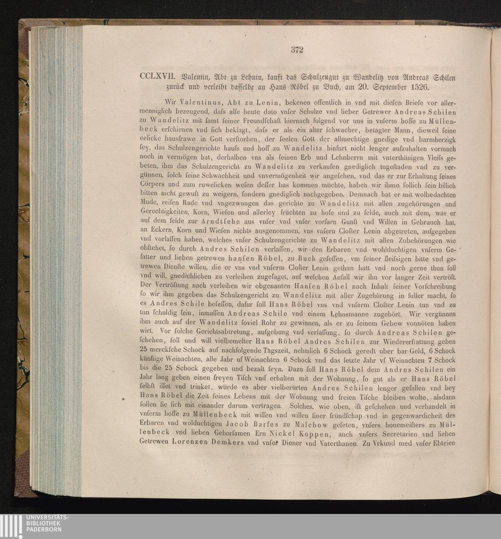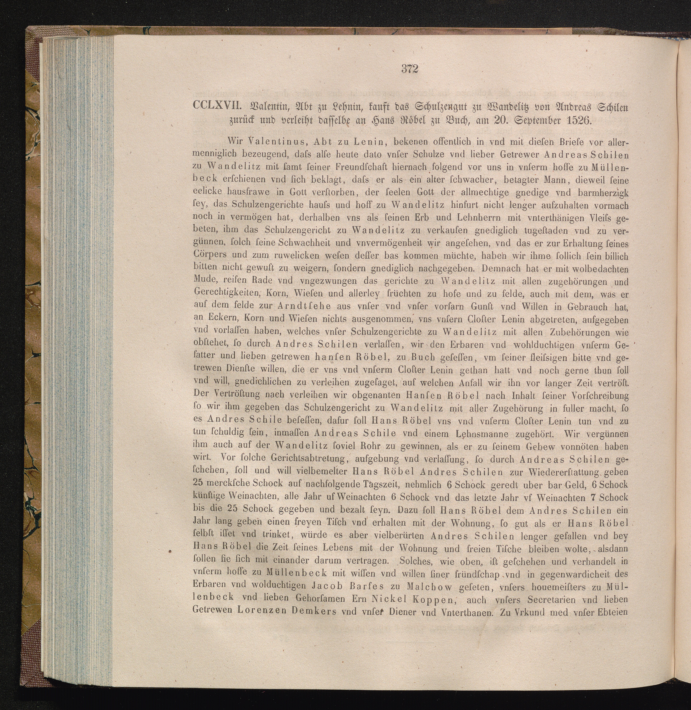 CCLXVII. Valentin, Abt zu Lehnin, kauft das Schulzengut zu Wandelitz von Andreas[...]