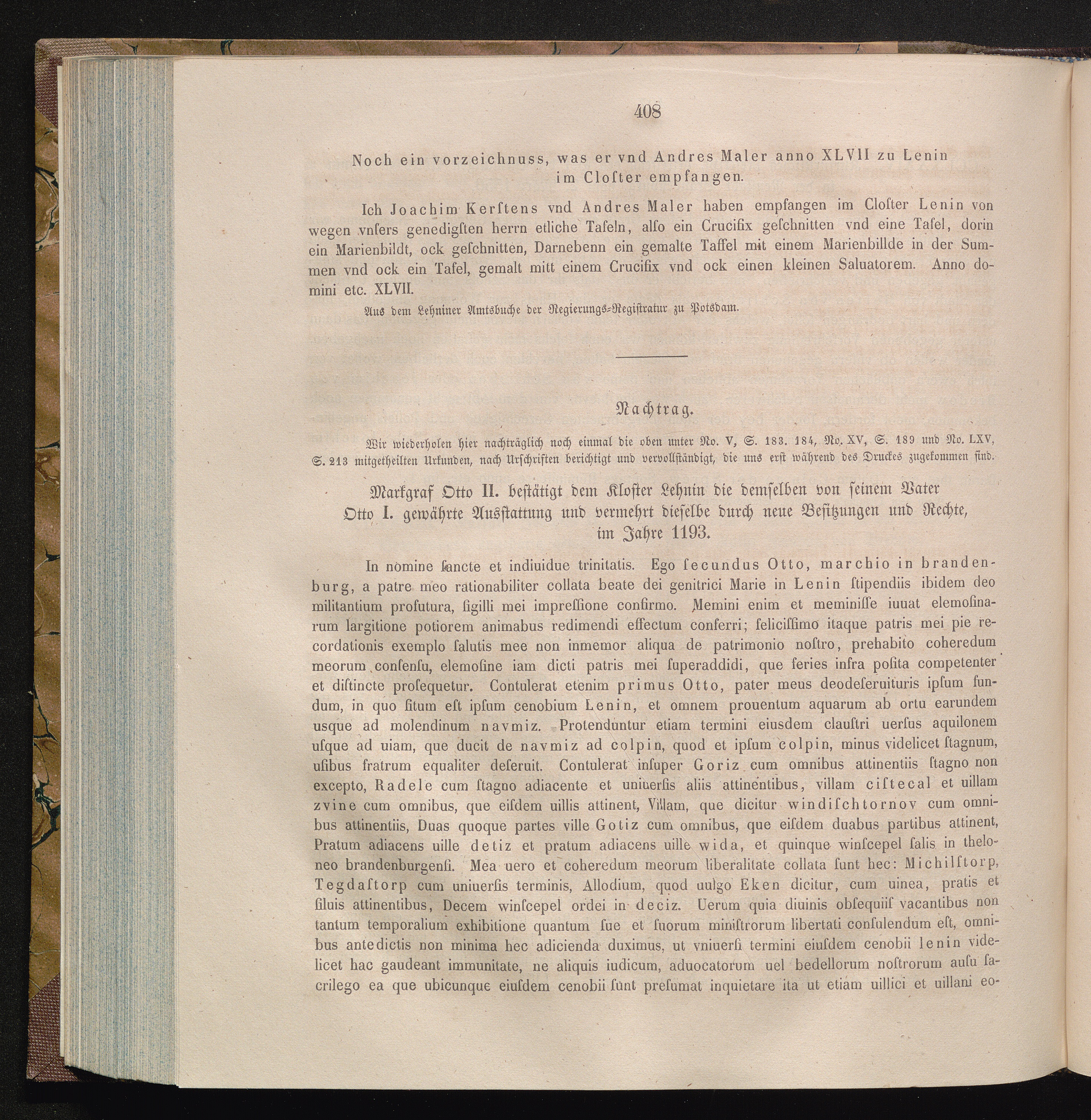 Markgraf Otto II. bestätigt dem Kloster Lehnin die demselben von seinem Vater Otto[...]