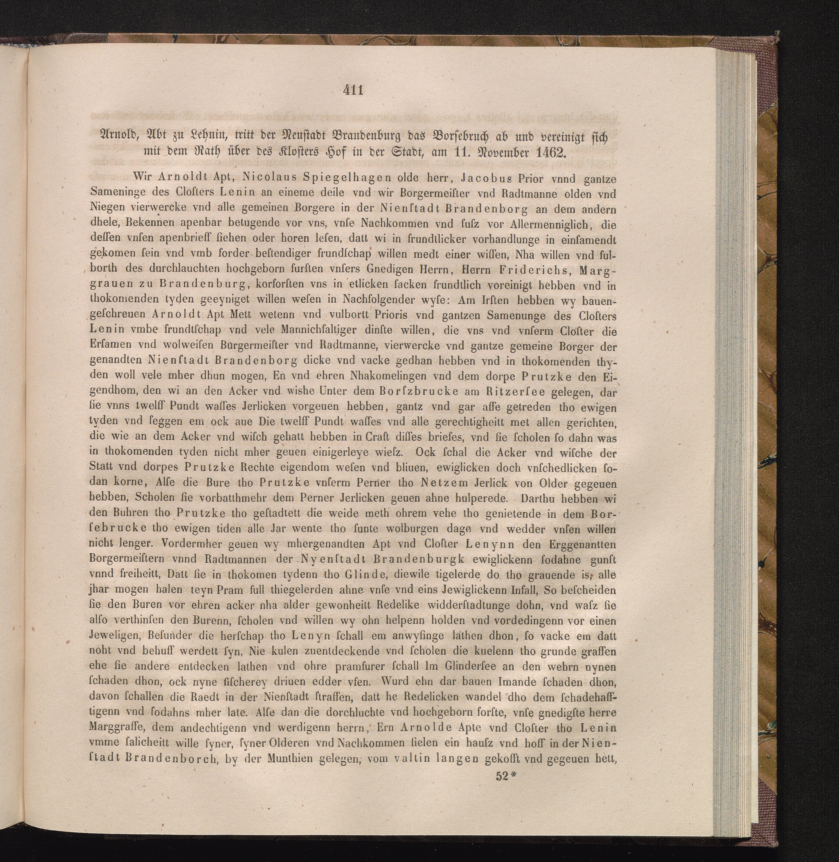 Arnold, Abt zu Lehnin, tritt der Neustadt Brandenburg das Borsebruch ab und vereinigt[...]