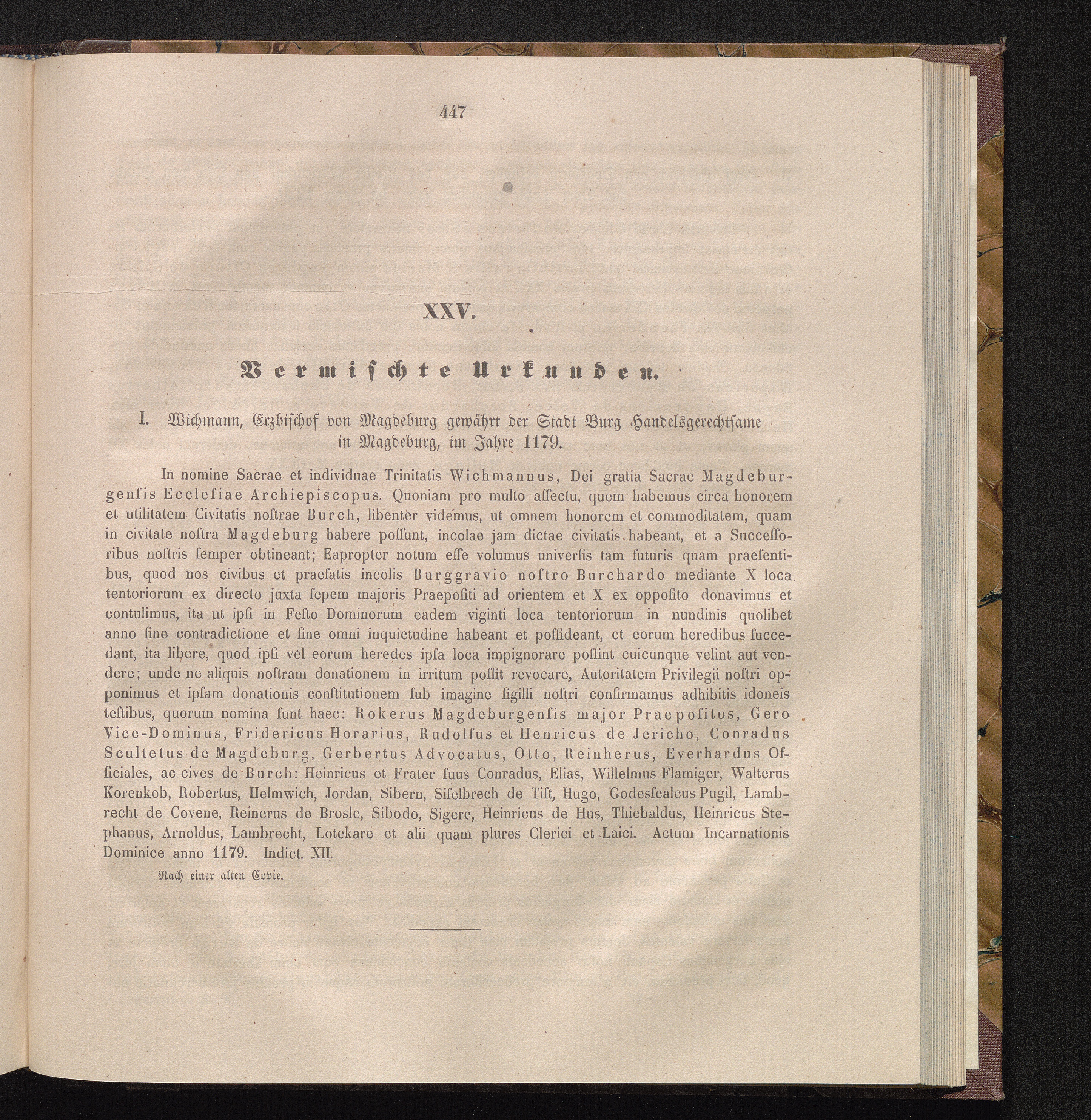 I. Wichmann, Erzbischof von Magdeburg gewährt der Stadt Burg Handelsgerechtsame in[...]