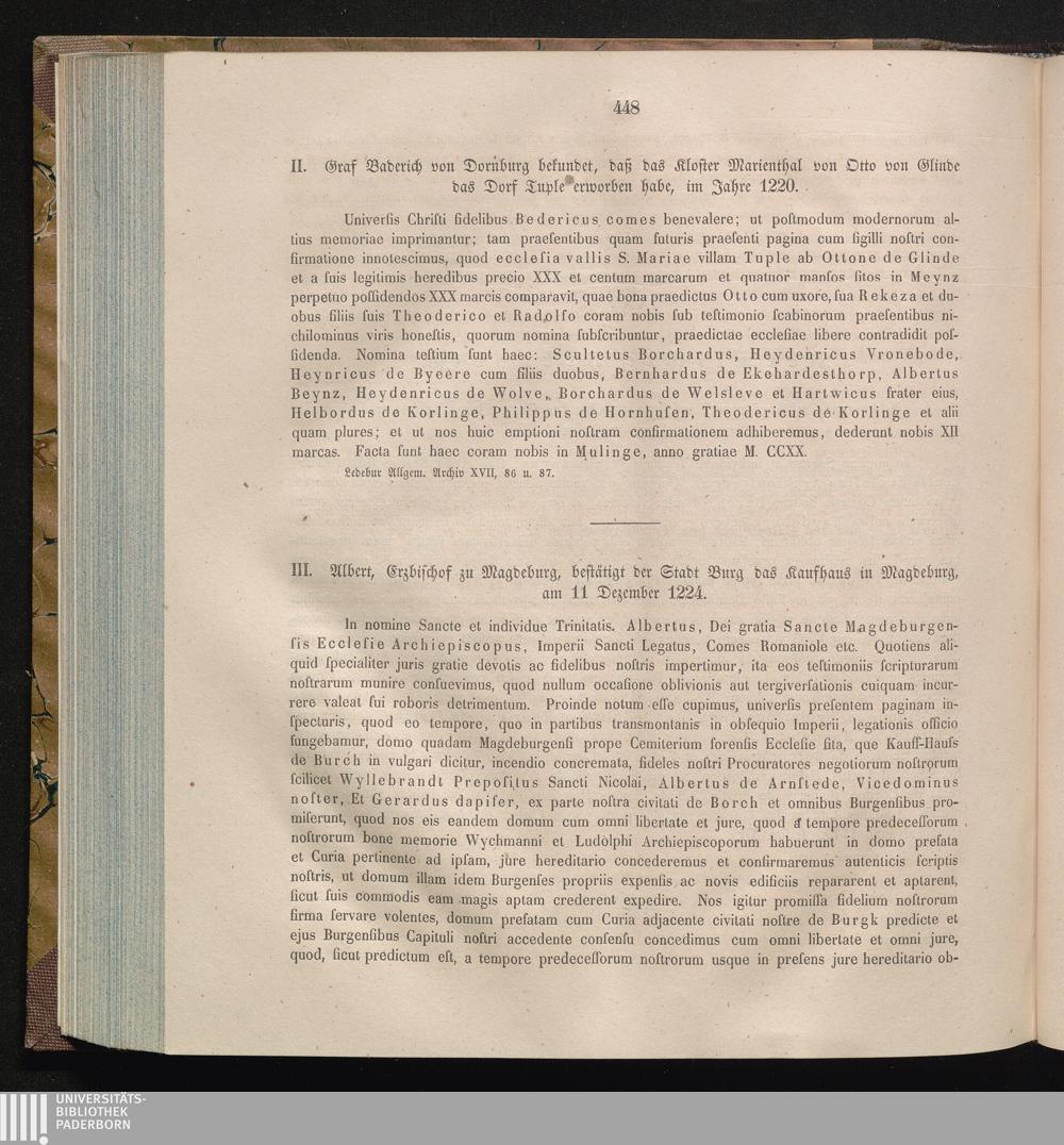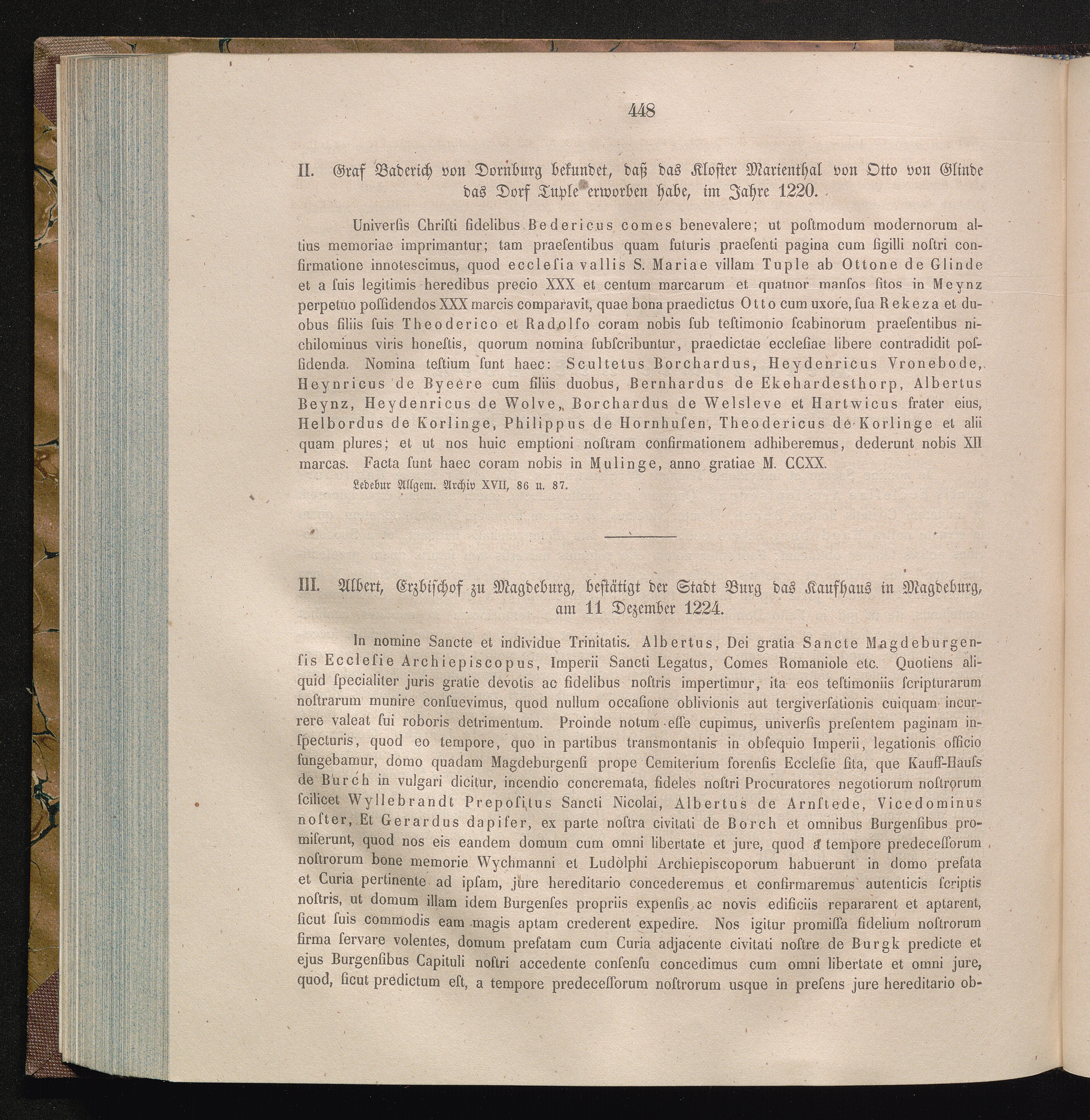 III. Albert, Erzbischof zu Magdeburg, bestätigt der Stadt Burg das Kaufhaus in Magdeburg,[...]