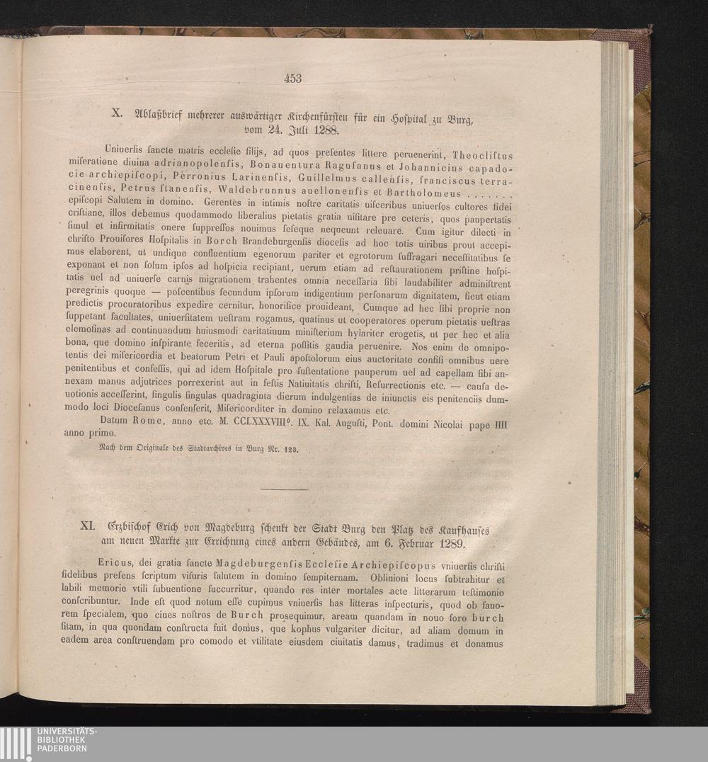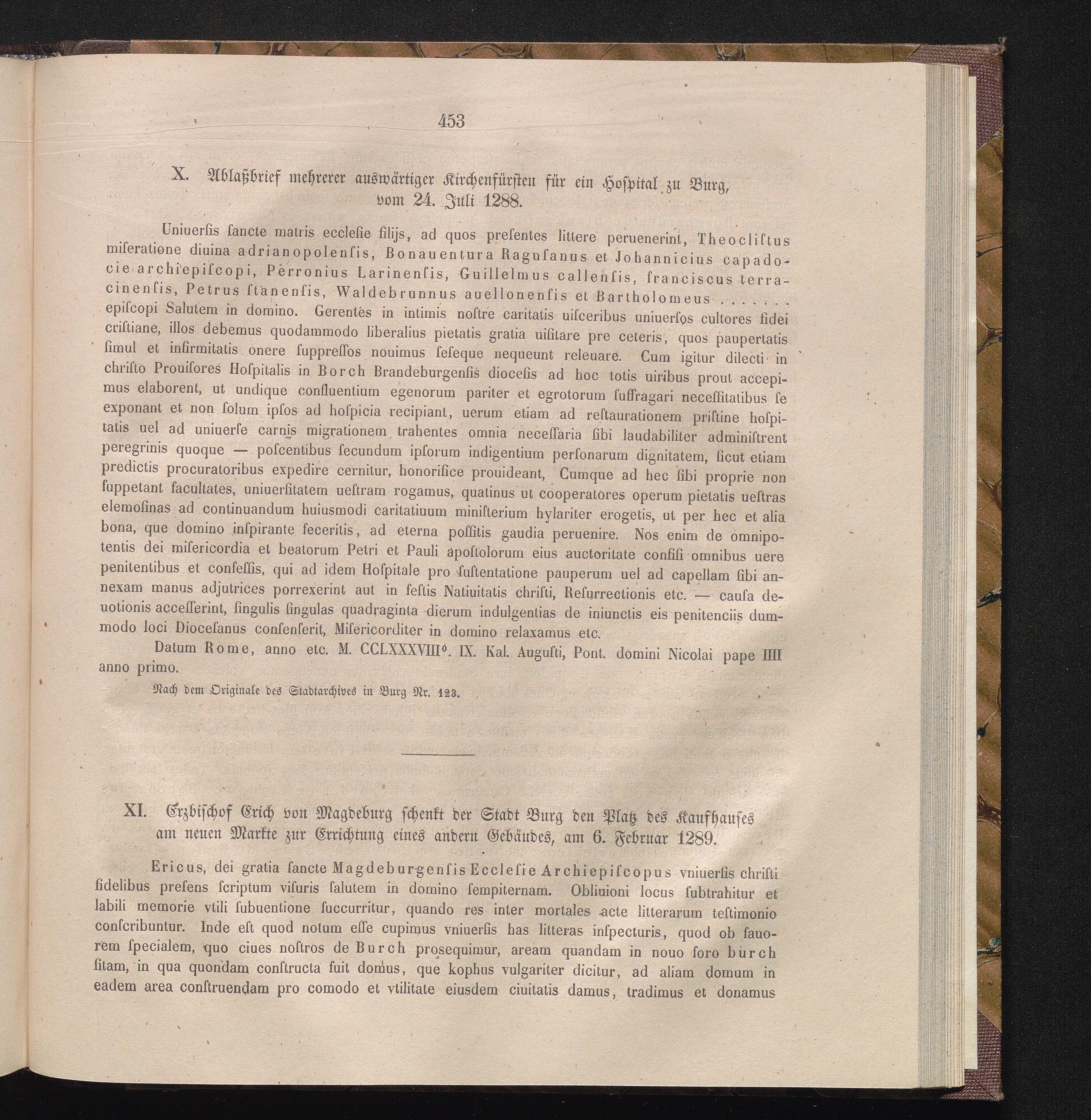 XI. Erzbischof Erich von Magdeburg schenkt der Stadt Burg den Platz des Kaufhauses[...]