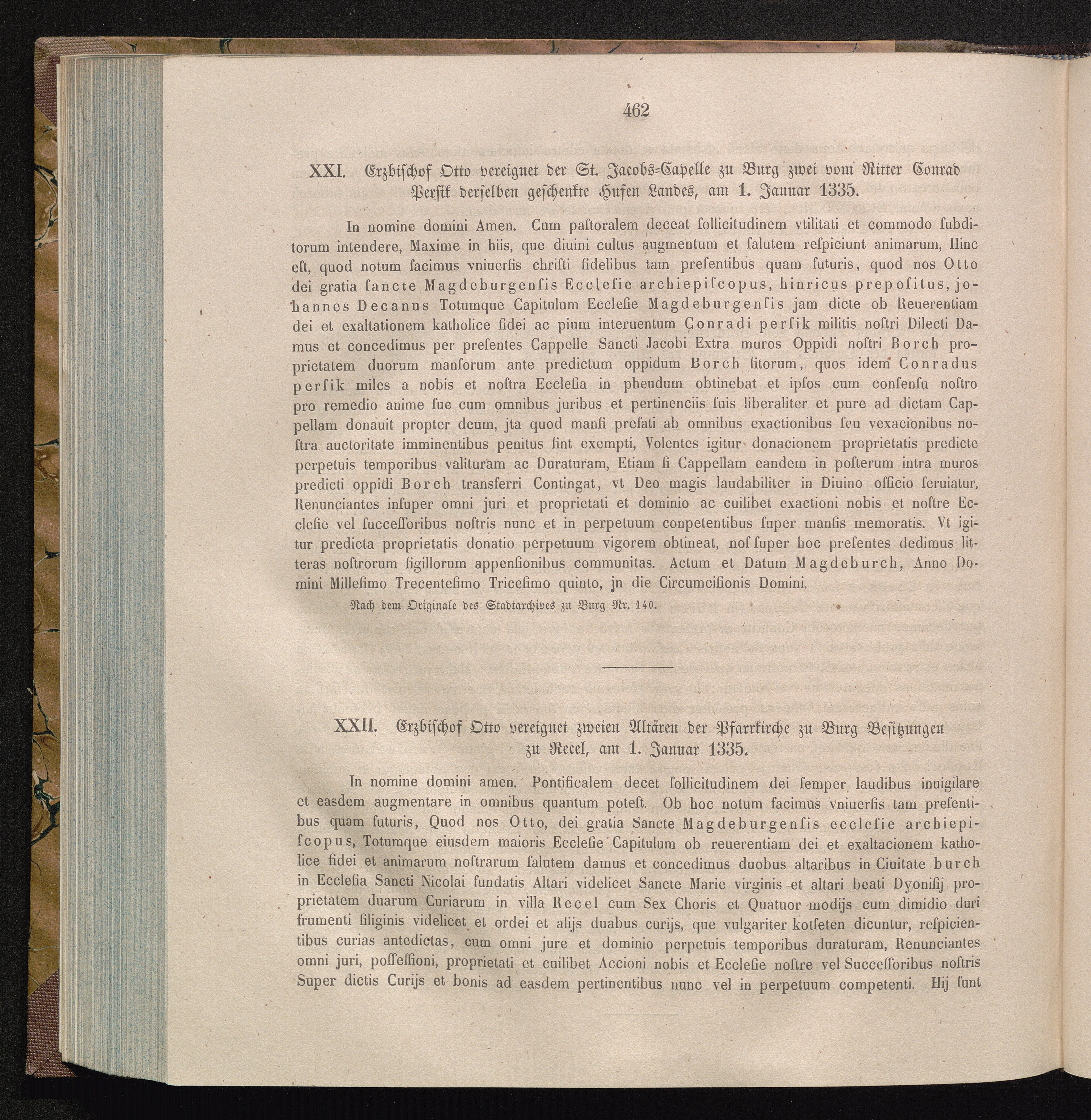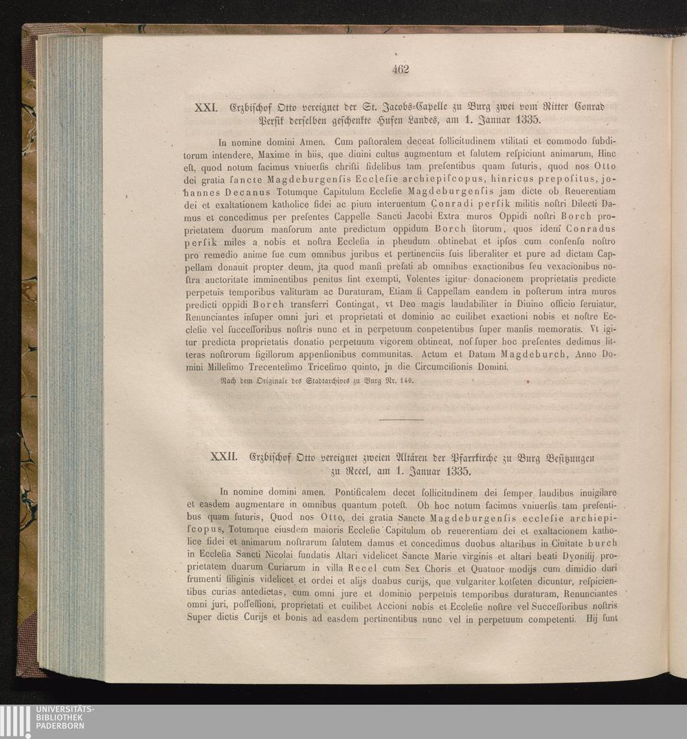 XXII. Erzbischof Otto vereignet zweien Altären der Pfarrkirche zu Burg Besitzungen[...]