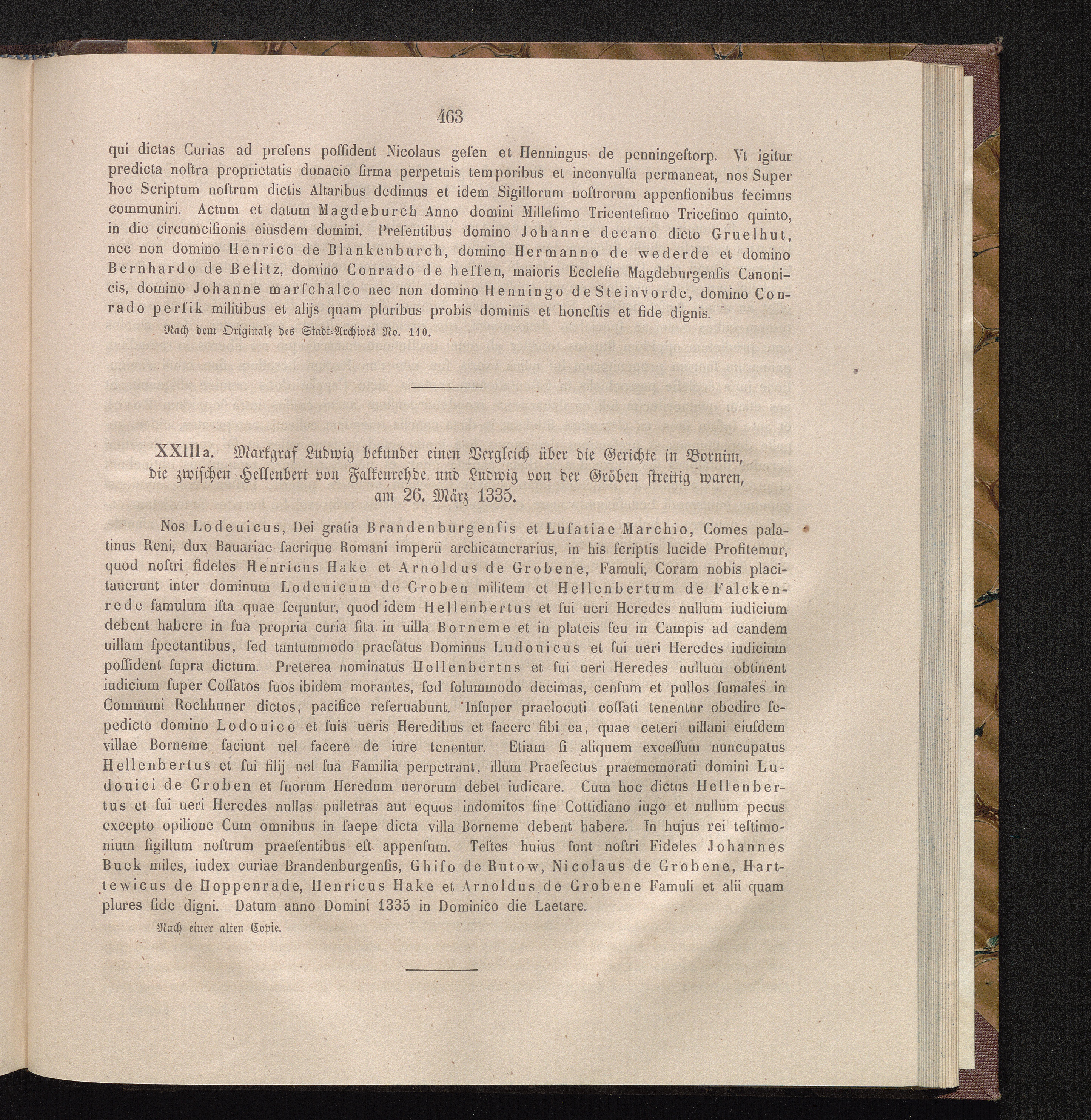 XXIIIa. Markgraf Ludwig bekundet einen Vergleich über die Gerichte in Bornim, die[...]