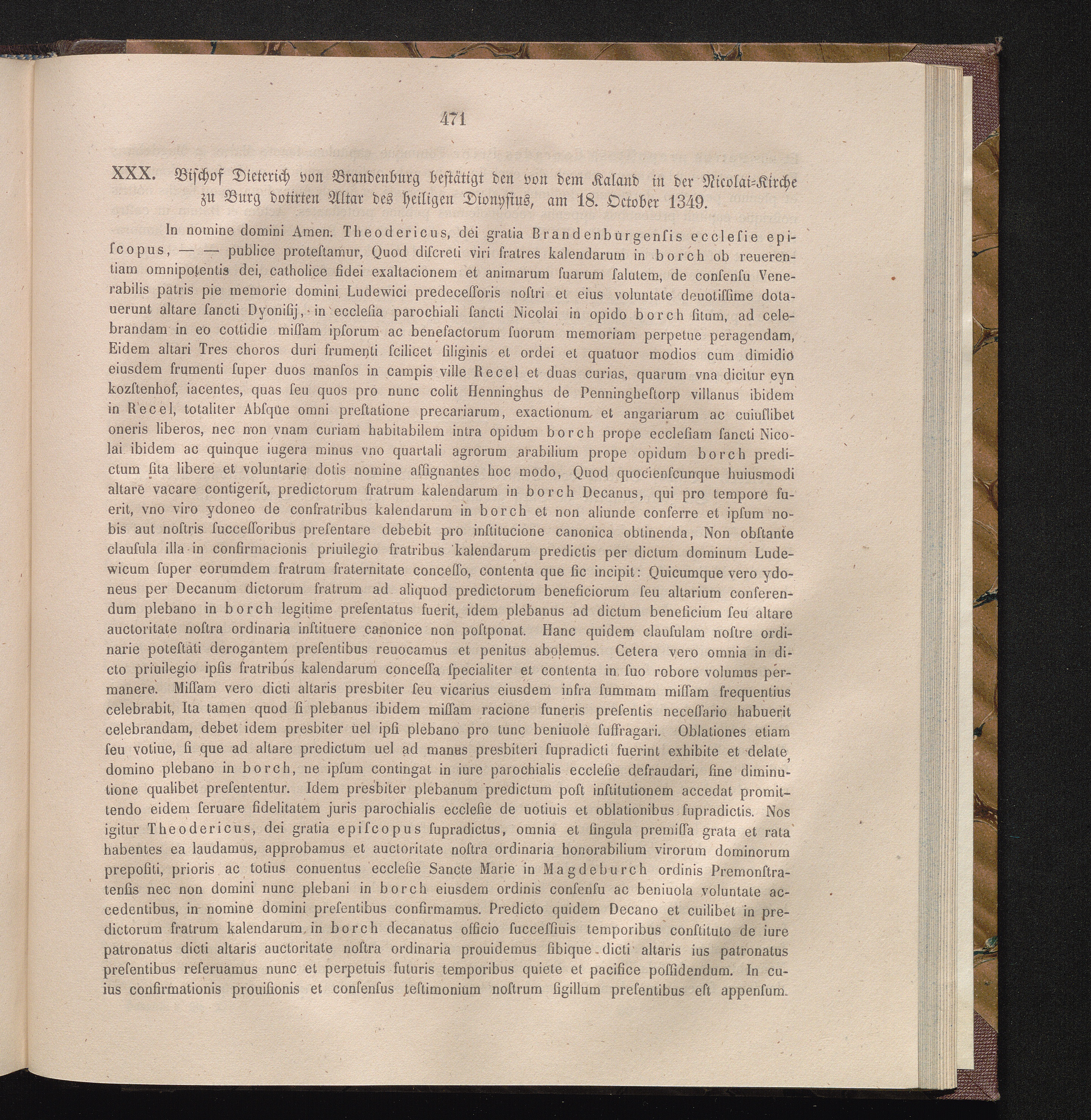 XXX. Bischof Dieterich von Brandenburg bestätigt den von dem Kaland in der Nicolia-Kirche[...]
