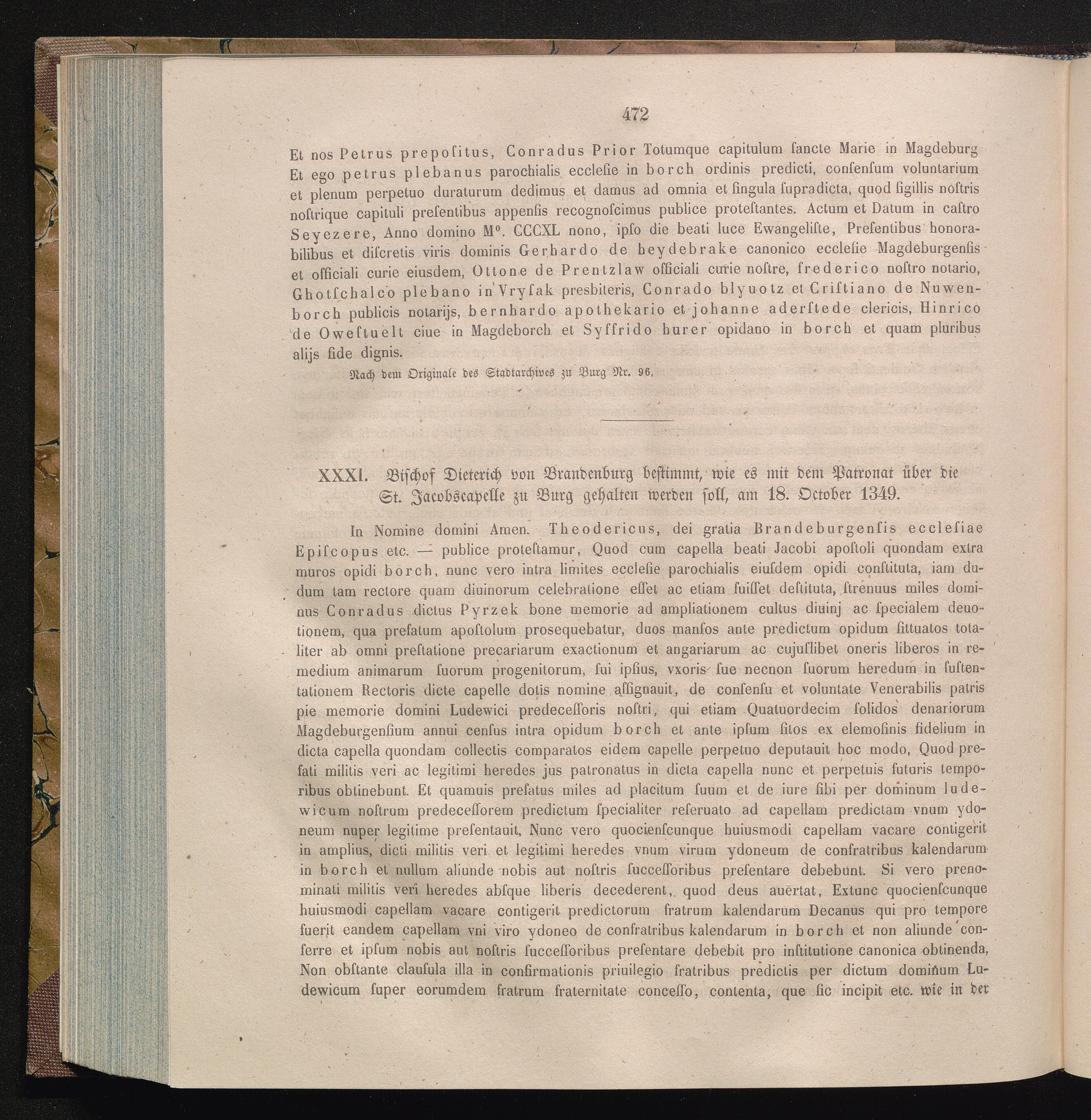 XXXI. Bischof Dieterich von Brandenburg bestimmt, wie es mit dem Patronat über die[...]