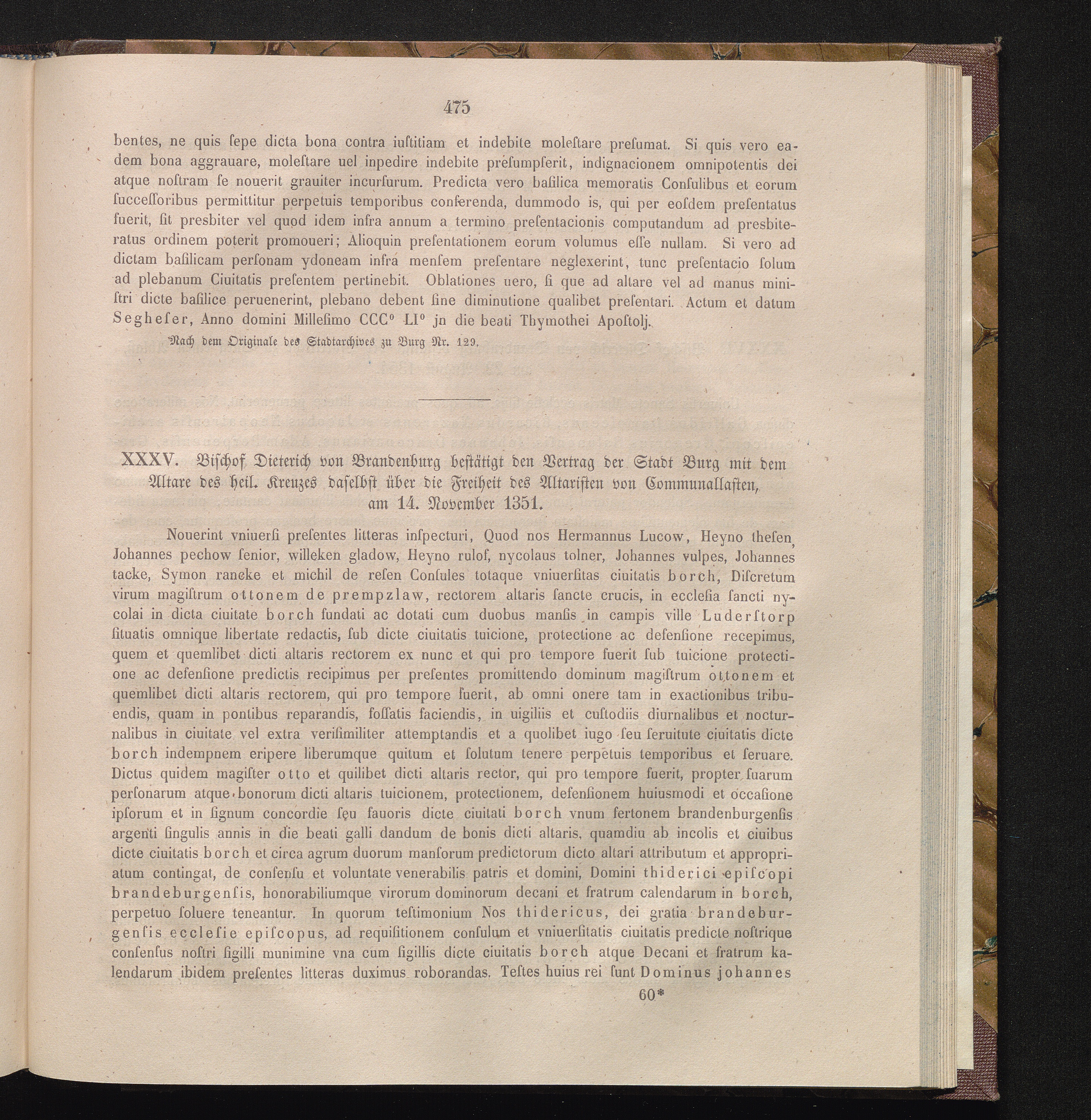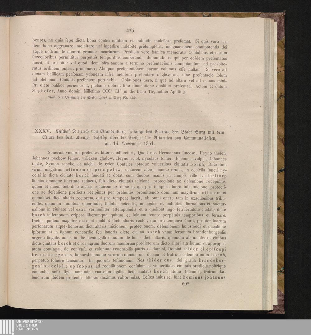 XXXV. Bischof Dieterich von Brandenburg bestätigt den Vertrag der Stadt Burg mit[...]