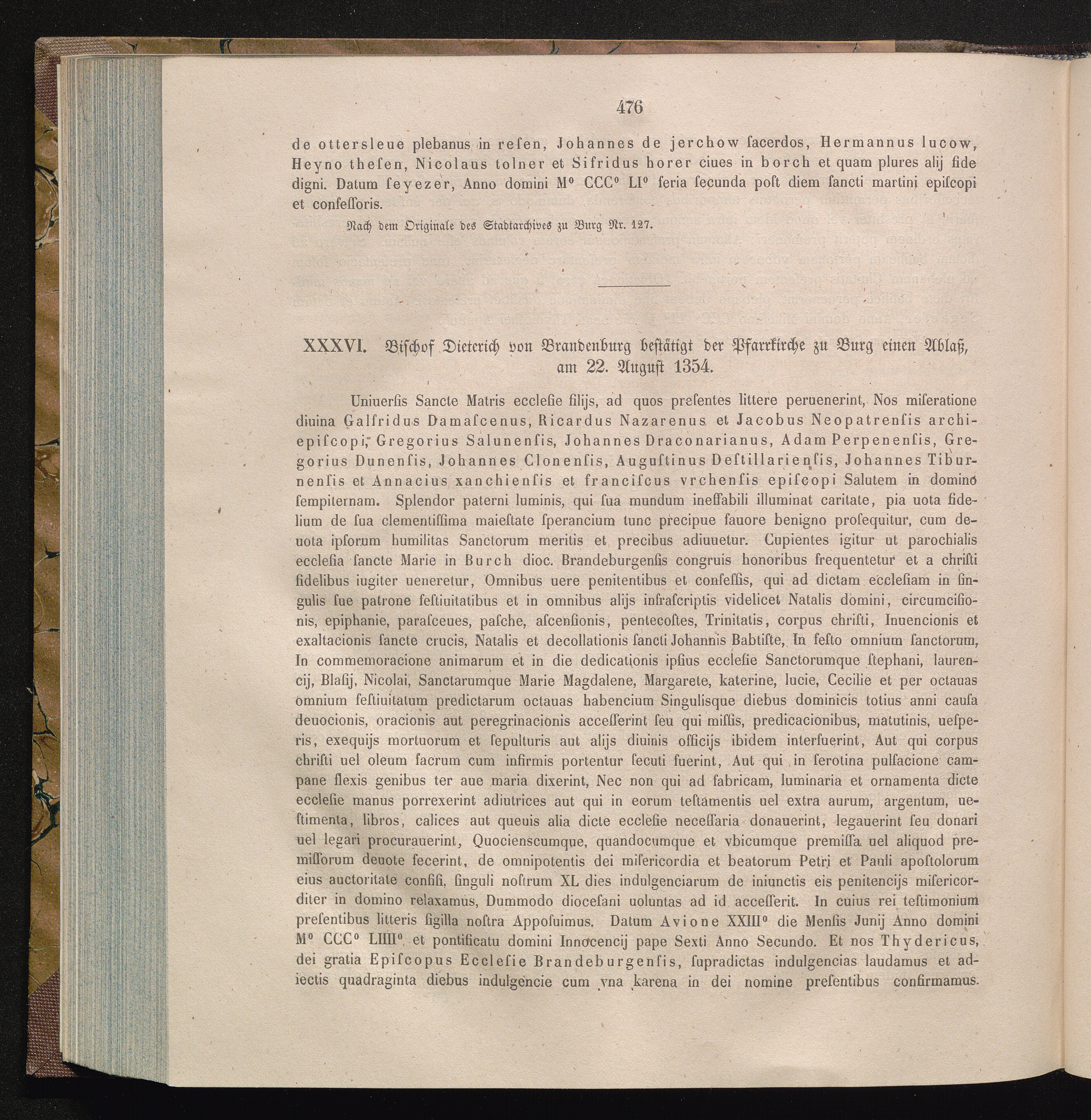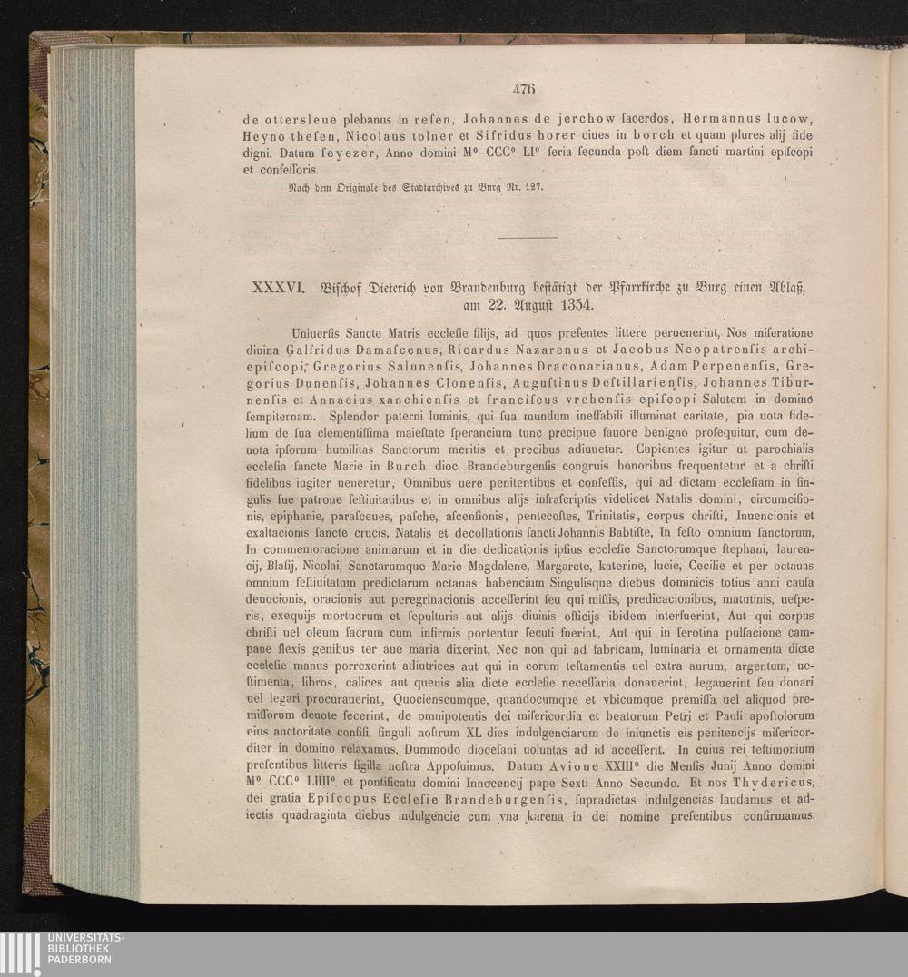 XXXVI. Bischof Dieterich von Brandenburg bestätigt der Pfarrkirche zu Burg einen[...]