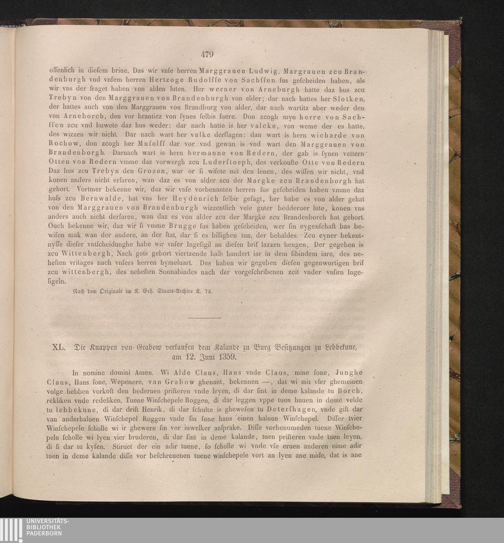 XL. Die Knappen von Grabow verkaufen dem Kalande zu Burg Besitzungen zu Lebbekune,[...]