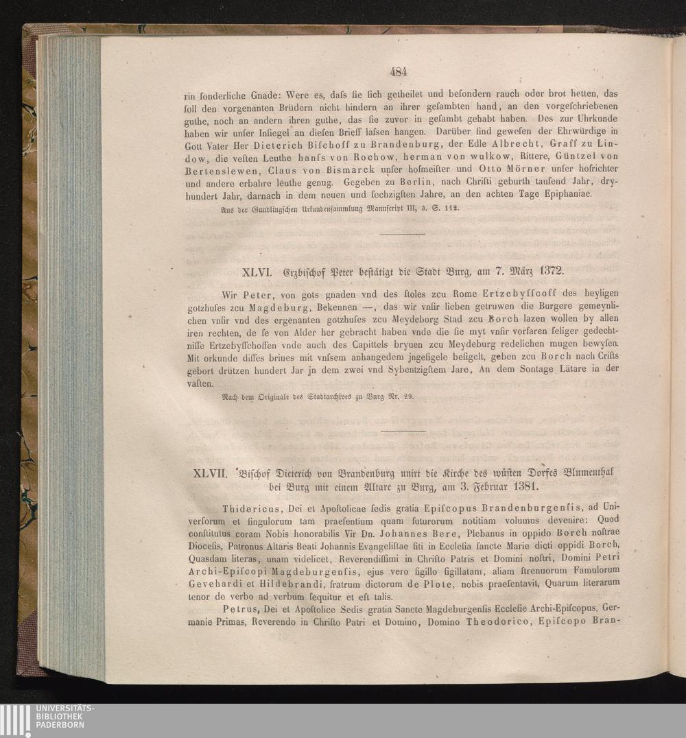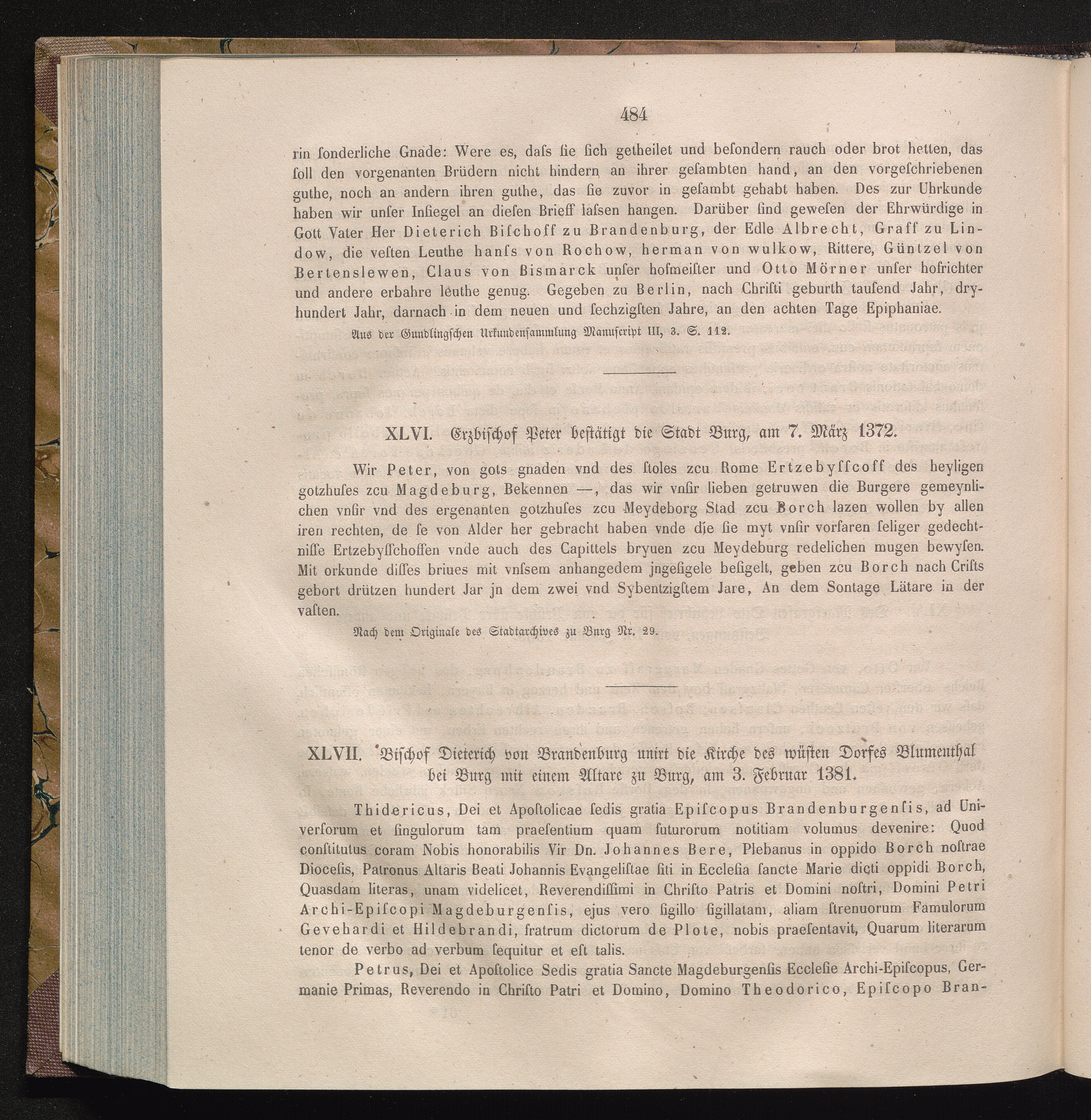 XLVII. Bischof Dieterich von Brandenburg unirt die Kirche des wüsten Dorfes Blumenthal[...]