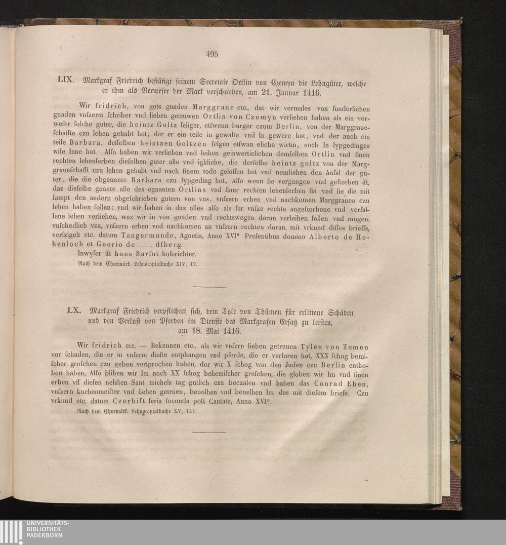 LX. Markgraf Friedrich verpflichtet sich, dem Tyle von Thümen für erlittene Schäden[...]