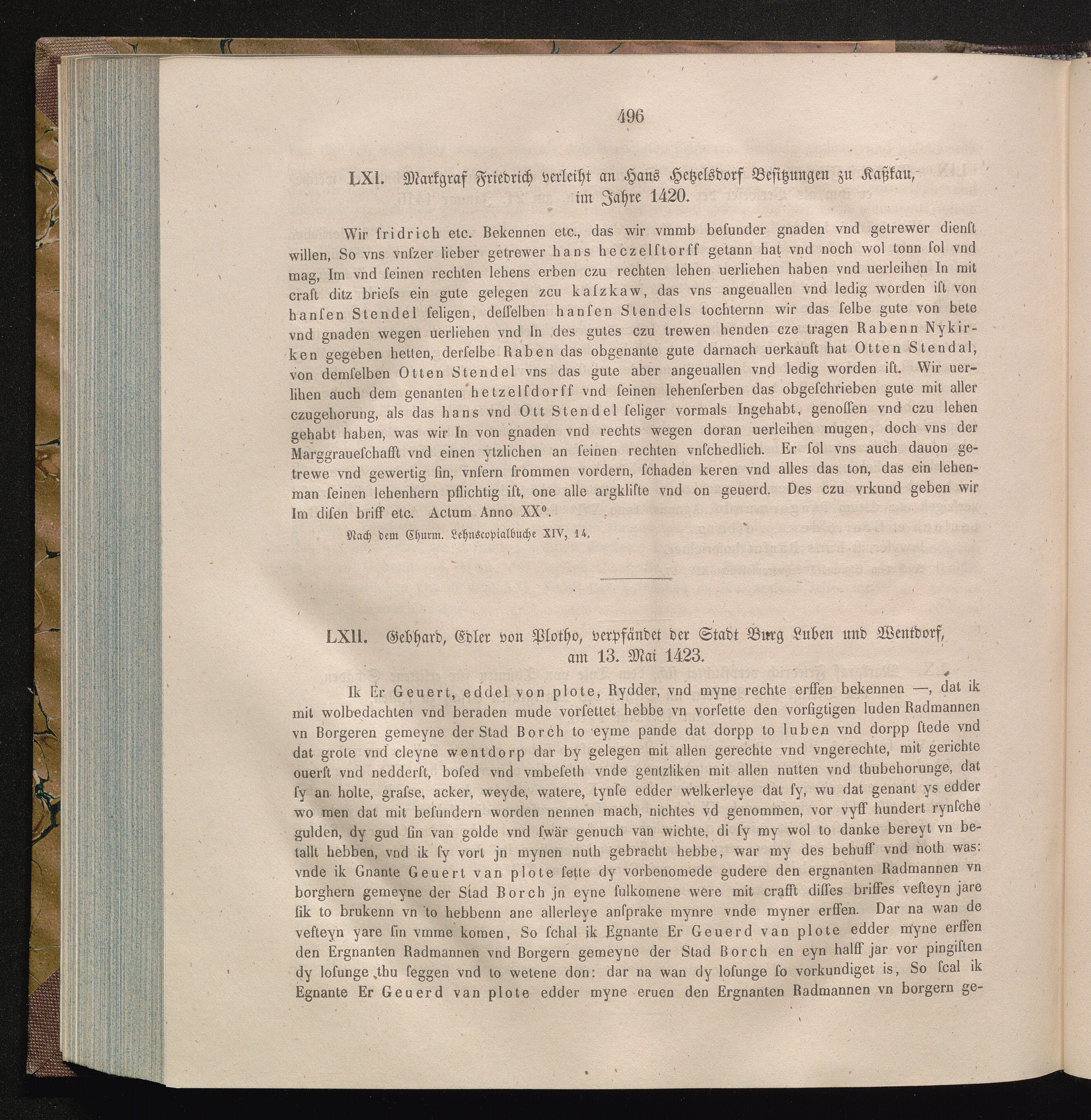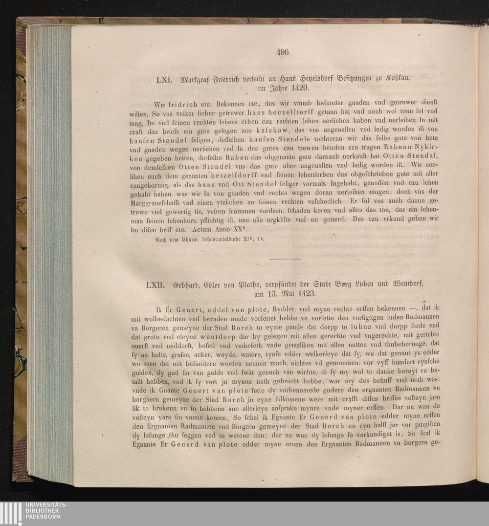 LXII. Gebhard, Edler von Vlotho, verpfändet der Stadt Burg Luben und Wentdorf, am[...]