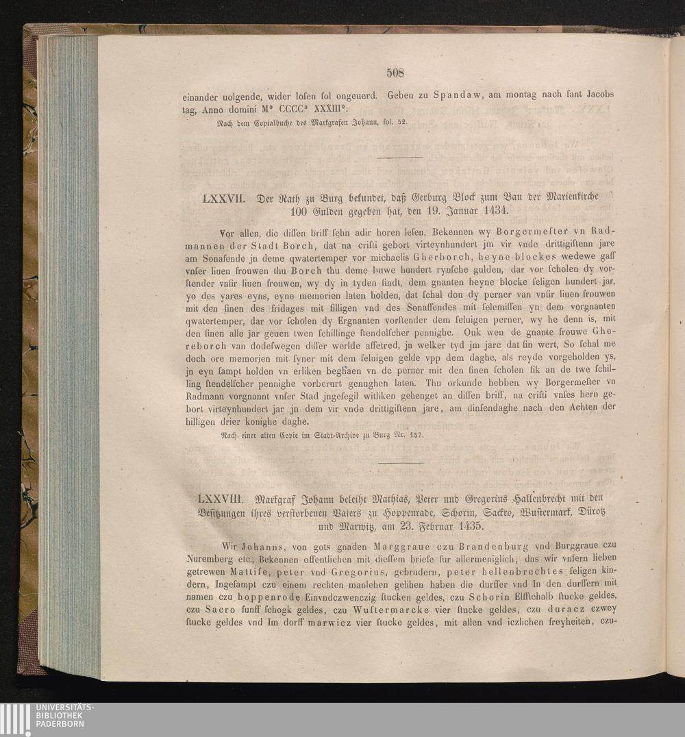 LXXVIII. Markgraf Johann beleiht Mathias, Peter und Gregorius Hallenbrecht mit den[...]
